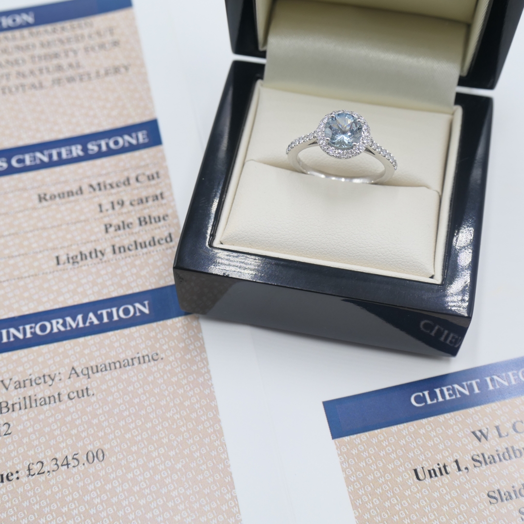 Beyond its beauty, the combination of natural diamonds and aquamarine presents enduring investment appeal. Certified pieces such as this maintain desirability across markets, offering both intrinsic value and collectable worth. With an estimated retail valuation of £2,345, this ring perfectly balances sophistication, rarity, and long-term value.