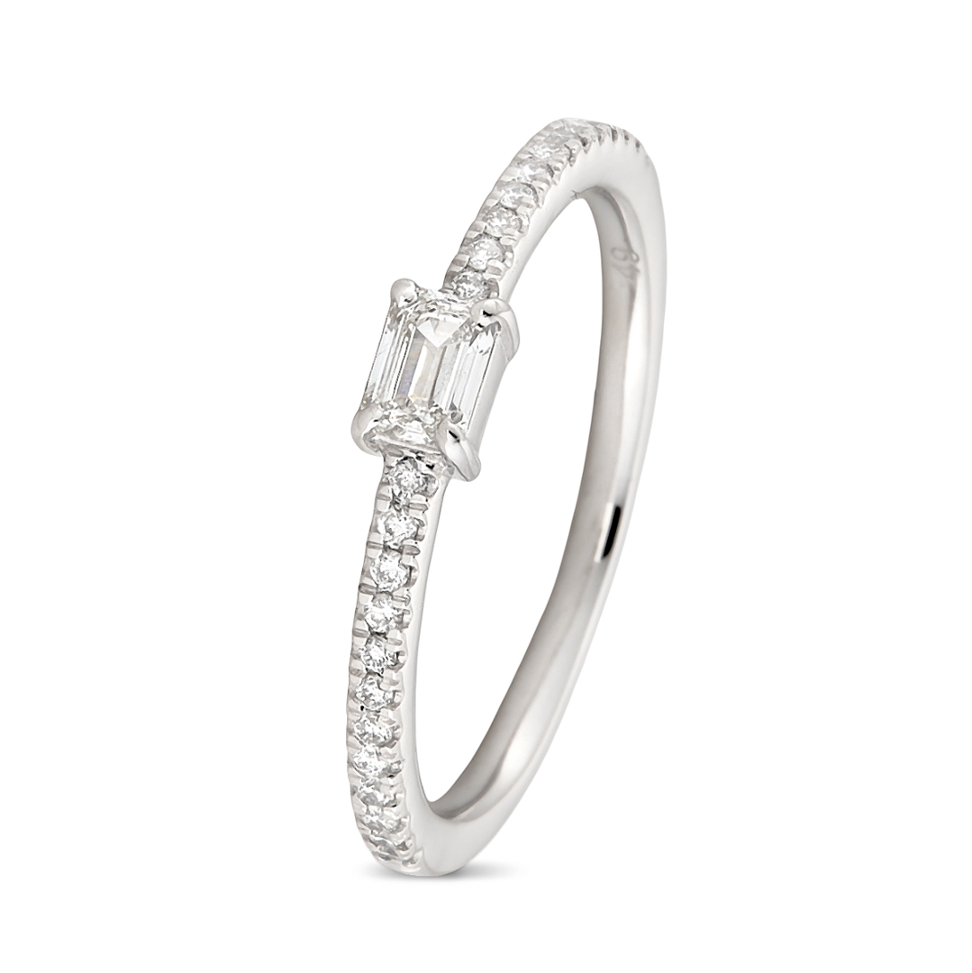 A brand new, unused, certified platinum natural diamond cluster ring, set with one emerald-cut diamond & a cluster of brilliant-cut diamonds within the band.