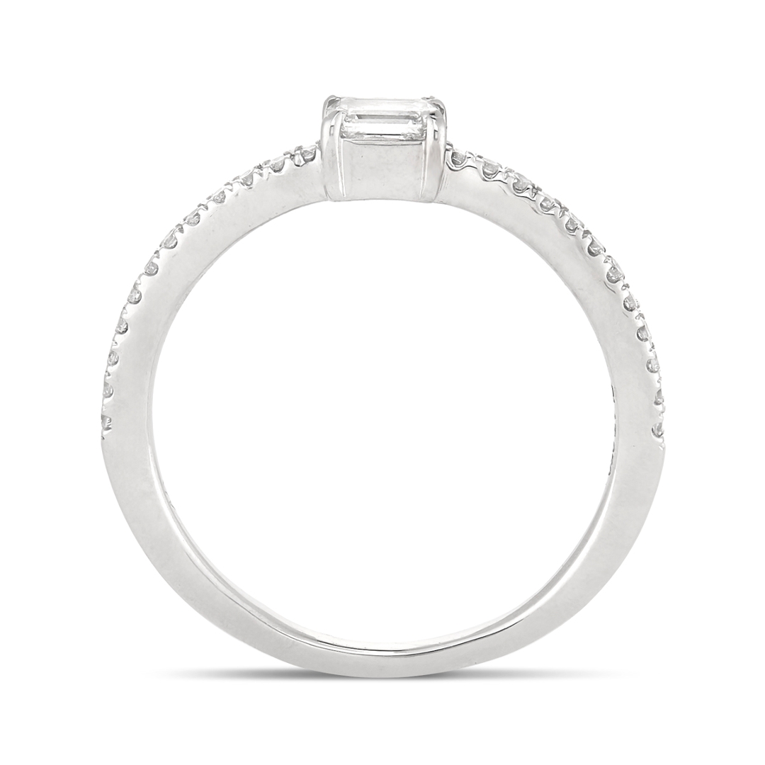 A brand-new, unused platinum natural diamond cluster ring, crafted with refinement and modern elegance. The design centres on a striking emerald-cut diamond weighing 0.34 carat, graded F–G in colour with clarity between VS2 and SI1, offering crisp brilliance and sophistication. Accentuating this central stone, twenty-four round brilliant-cut natural diamonds are meticulously set along the band, enhancing the sparkle and creating a seamless flow of light across the ring. The platinum mount, hallmarked for purity, provides strength, durability and a luminous finish that complements the natural radiance of the diamonds. With a total jewellery weight of 2.62g, it strikes a delicate balance between enduring quality and delicacy.