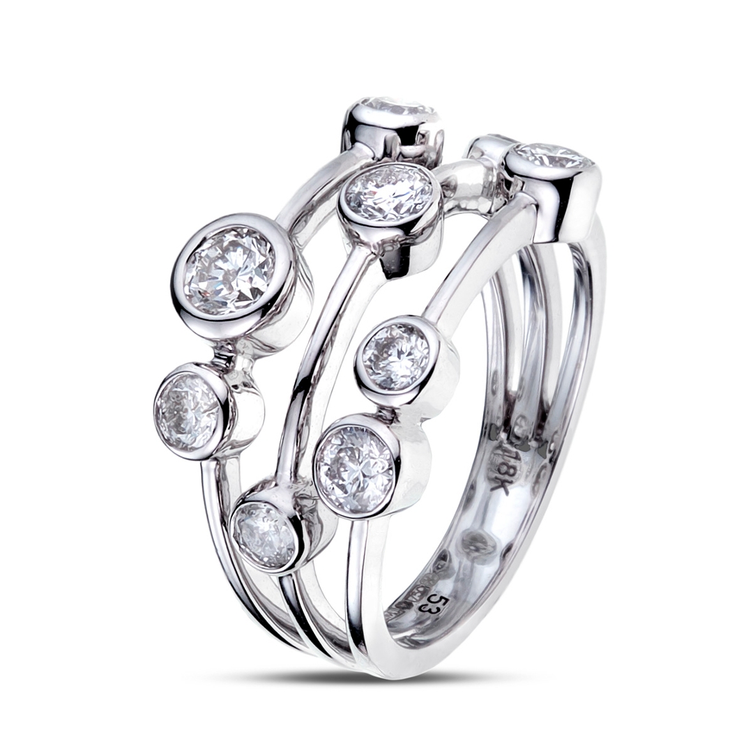 The sleek 18ct white gold setting provides the perfect backdrop for the diamonds’ radiant brilliance, its cool, lustrous tone amplifying their natural sparkle. Designed with precision and balance, the ring feels substantial yet refined, offering both comfort and enduring style. Every stone is securely set to ensure lasting beauty and durability, showcasing the meticulous attention to detail found only in fine jewellery.