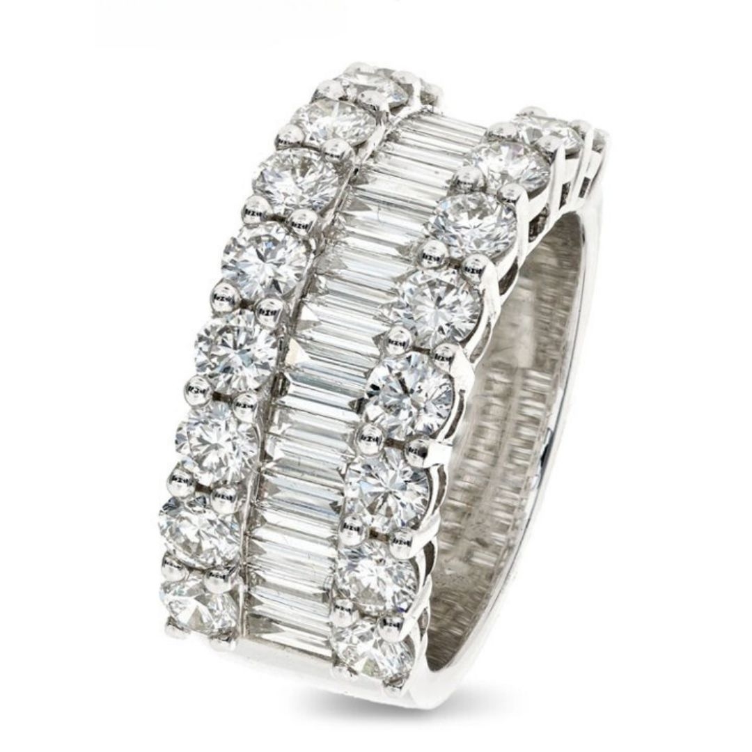 Natural diamonds are admired for their authenticity and rarity, each one a unique creation formed deep within the Earth over the course of billions of years. The combination of baguette and brilliant cuts offers both sleek sophistication and dazzling brilliance, a pairing that enhances the ring’s appeal while ensuring it stands out as a truly remarkable design. This combination of artistry and rarity ensures that the piece will hold lasting admiration.