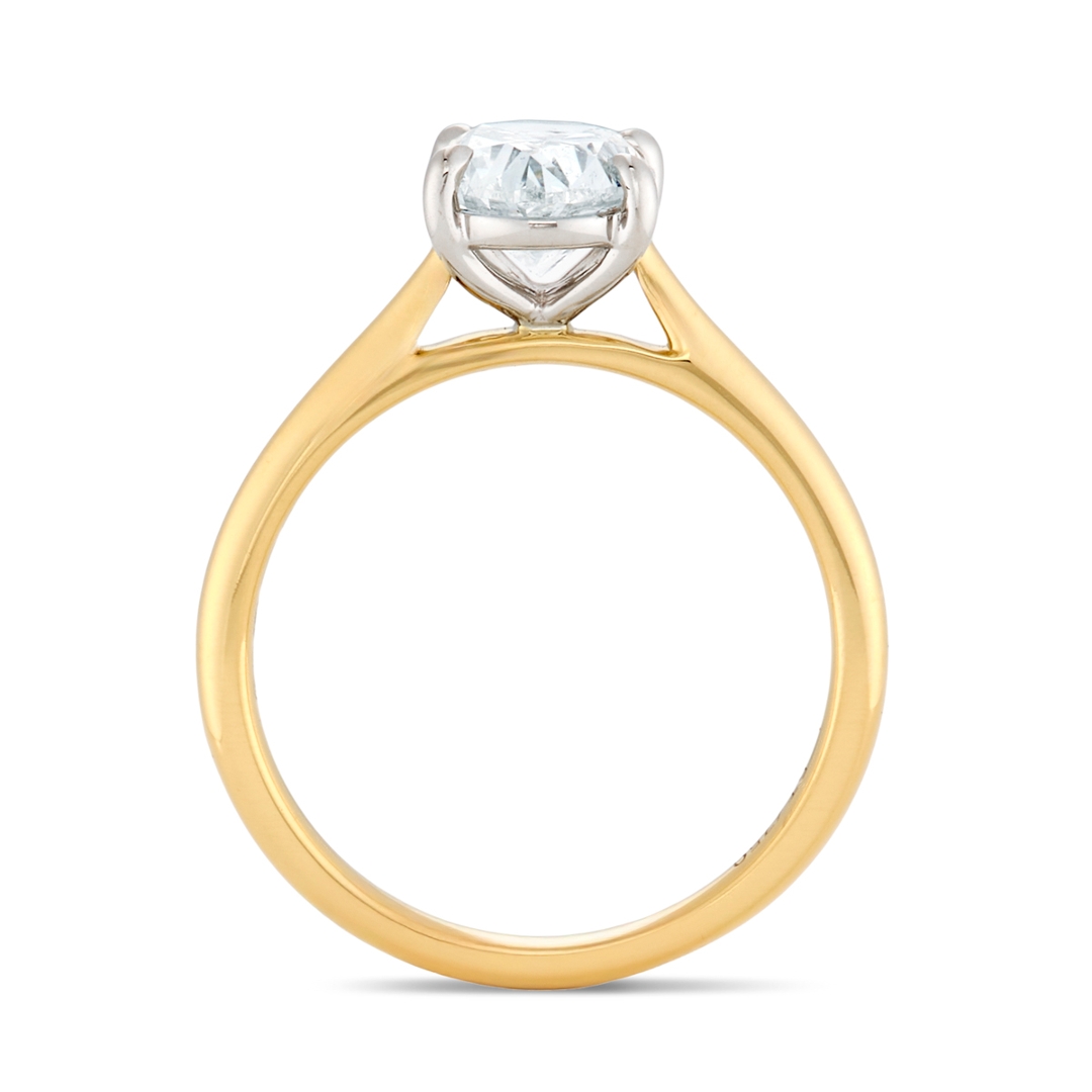 A brand-new, unused, certified 18ct yellow & white gold natural diamond solitaire engagement ring, set with one oval cut diamond at the centre.