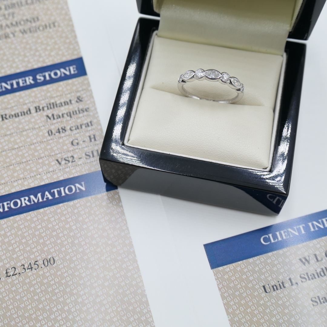 With a full valuation of £2,345.00, this ring offers exceptional quality and investment potential. Both sophisticated and versatile, it is a jewel that combines elegance with the lasting value of natural diamonds.