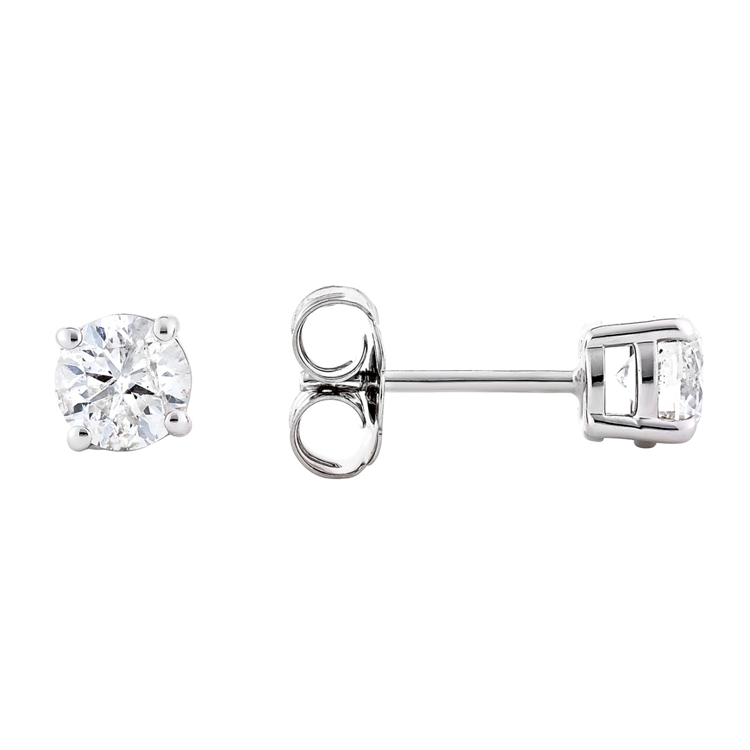 A brand new, unused, certified 18ct white gold pair of natural diamond solitaire earrings, set with two brilliant-cut diamonds.