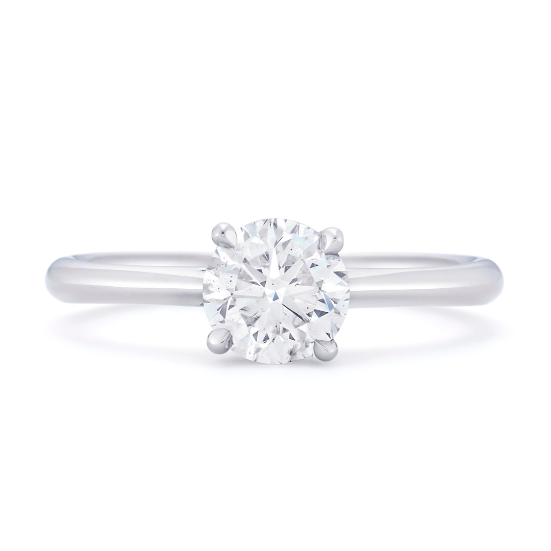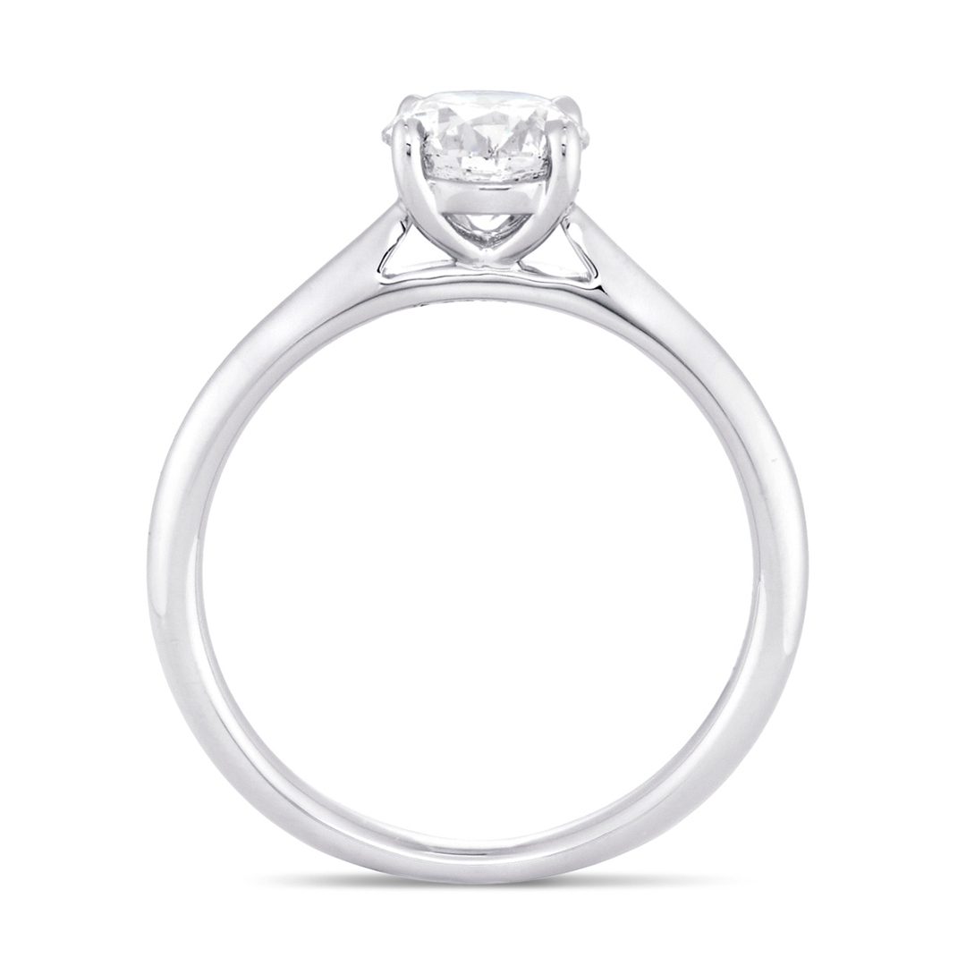 A brand-new, unused, certified natural diamond solitaire engagement ring, set with one brilliant cut diamond at the centre, set in platinum.