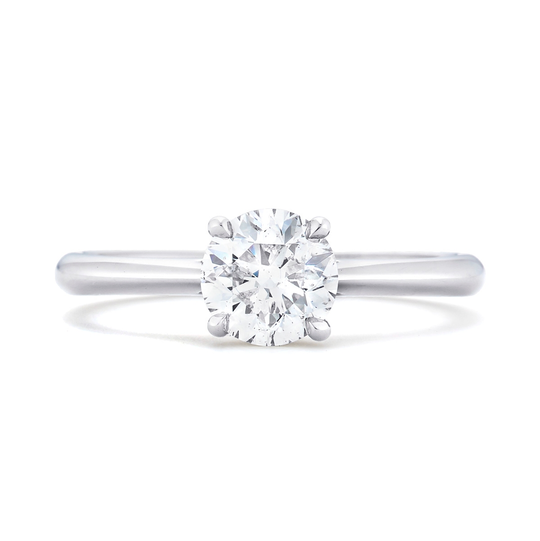 A brand-new, unused, certified natural diamond solitaire engagement ring, set with one brilliant cut diamond at the centre, set in platinum.