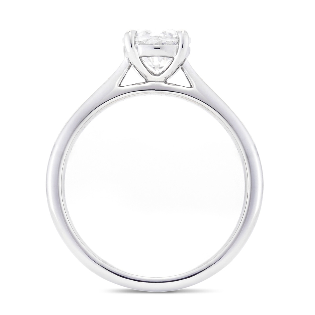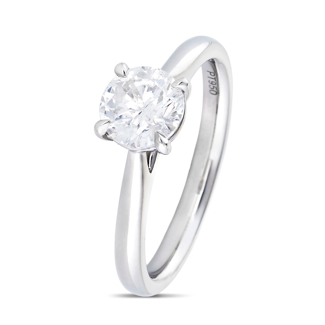 A brand new, unused, certified platinum natural diamond solitaire engagement ring, set with one brilliant cut diamond at the centre.