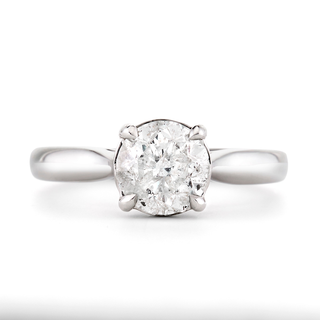 A brand new, unused, certified natural diamond solitaire engagement ring, set with one brilliant cut diamond at the centre, set in platinum.