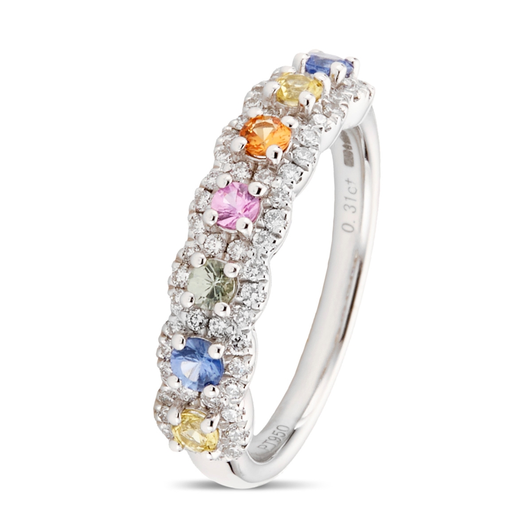 - > Natural Multi Sapphire 0.54ct & Diamond 0.31ct Ring