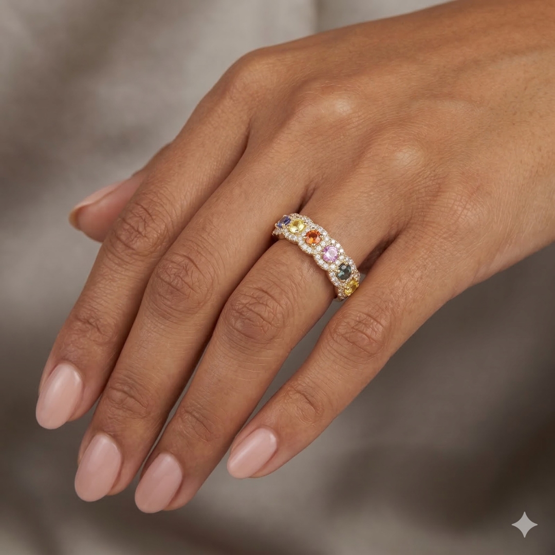 - > Natural Multi Sapphire 1.02ct & Diamond 0.36ct Ring