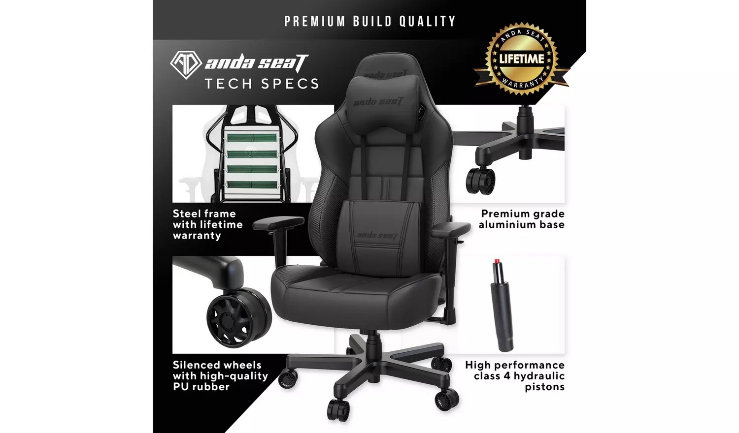 An Anda Seat Dark Demon Dragon gaming chair in black offers a commanding blend of comfort, durability, and striking design, making it an excellent addition to any gaming or office setup. Crafted with high-quality faux leather upholstery, it delivers a sleek, professional appearance while remaining easy to maintain. The racing-style silhouette provides a supportive and immersive seating experience, ideal for extended gaming sessions or long working hours.