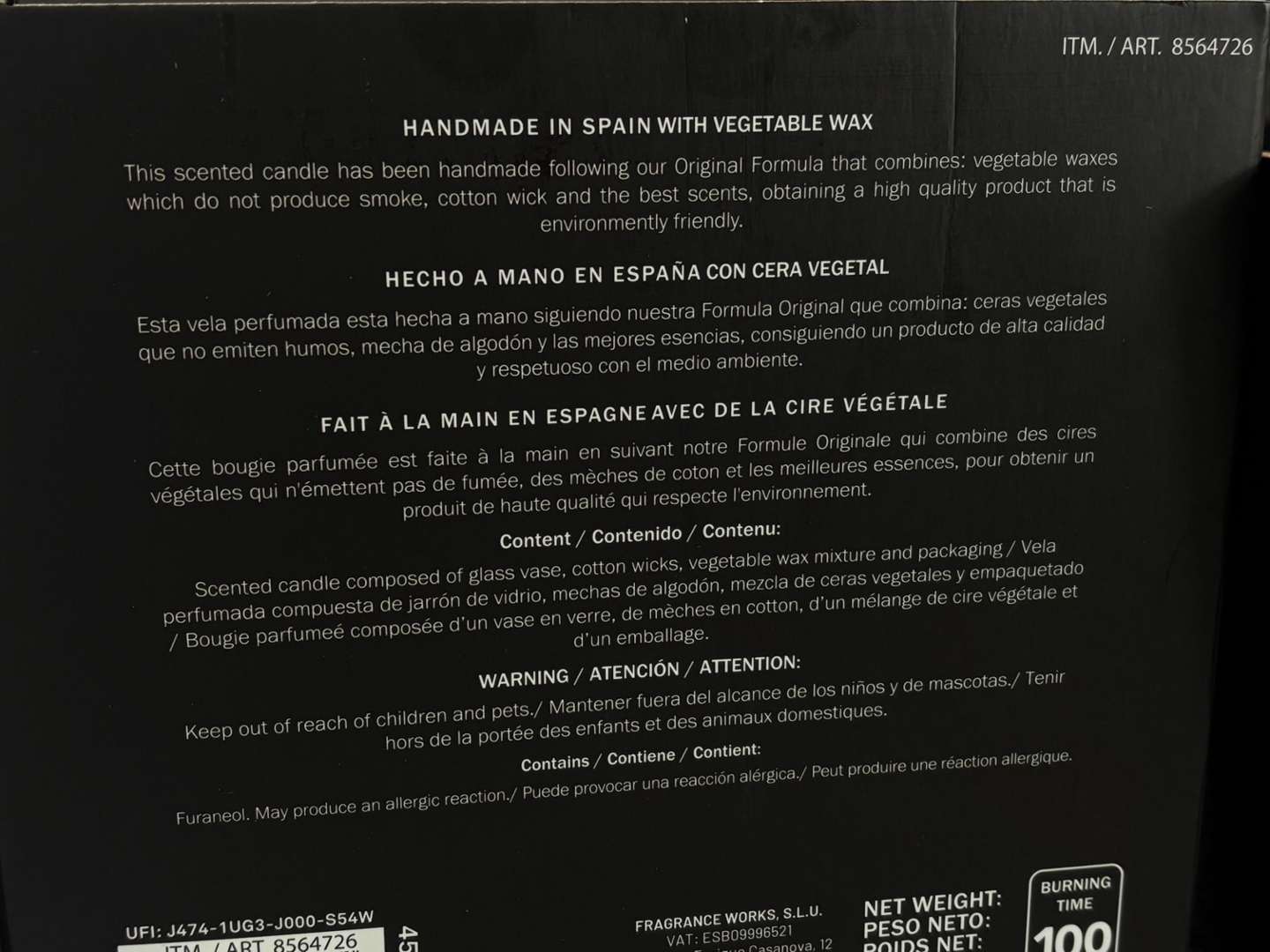 Complete with its original presentation box, this luxury candle delivers both visual impact and aromatic depth, making it a standout addition to any home fragrance collection.