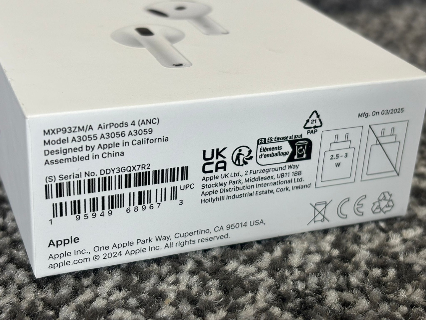 A brand new pair of Apple sealed AirPods 4 with Charging Case & Active Noise Cancellation.