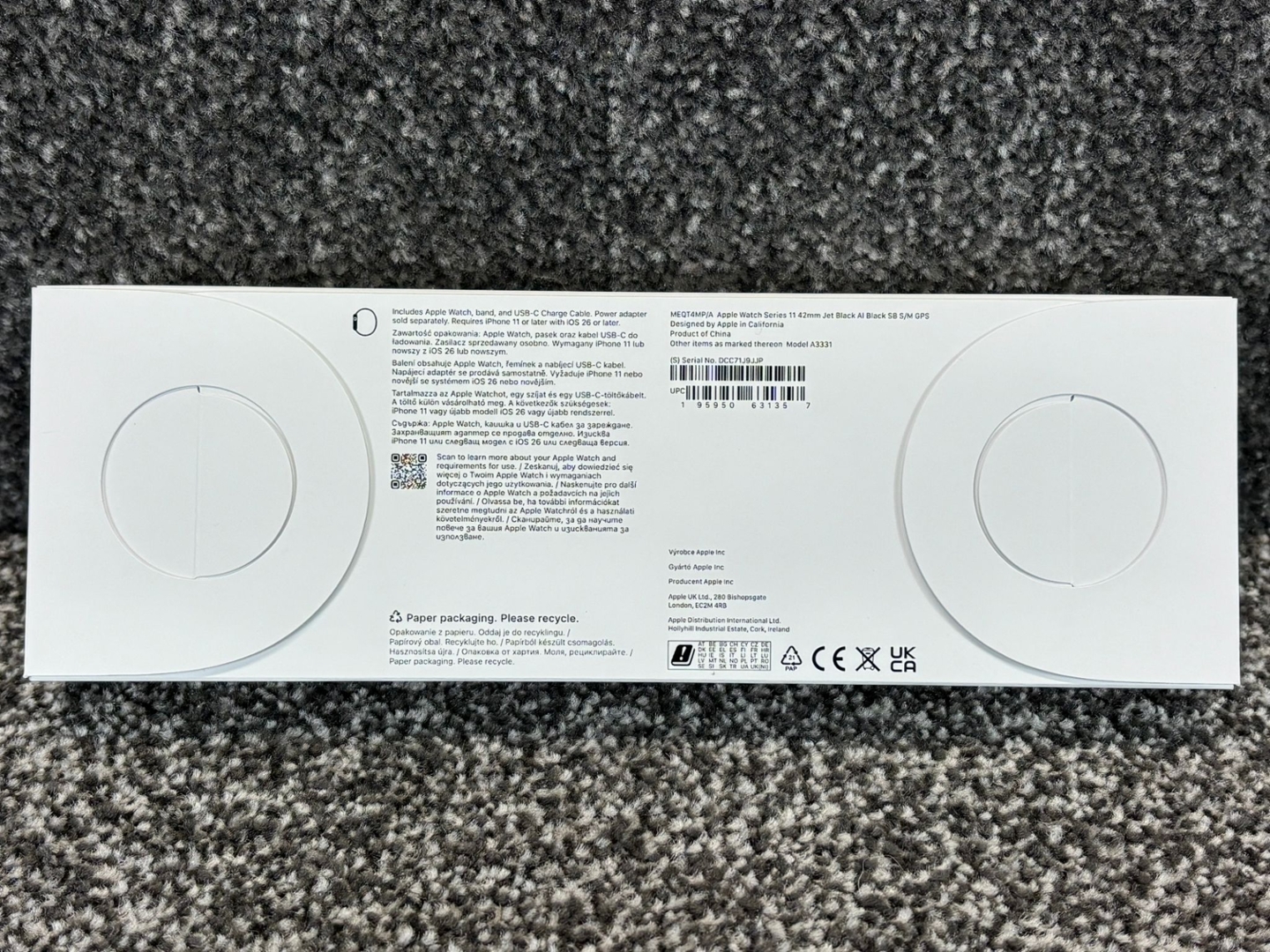 An Apple Watch Series 11 42mm in jet black presents a sleek, contemporary take on the definitive smartwatch. Encased in a lightweight yet robust aluminium shell with a deep black finish, the 42mm display offers bright, always-on visibility across apps, notifications and fitness metrics. The jet black colourway pairs seamlessly with sporty or everyday straps, making this a versatile choice for daily wear.