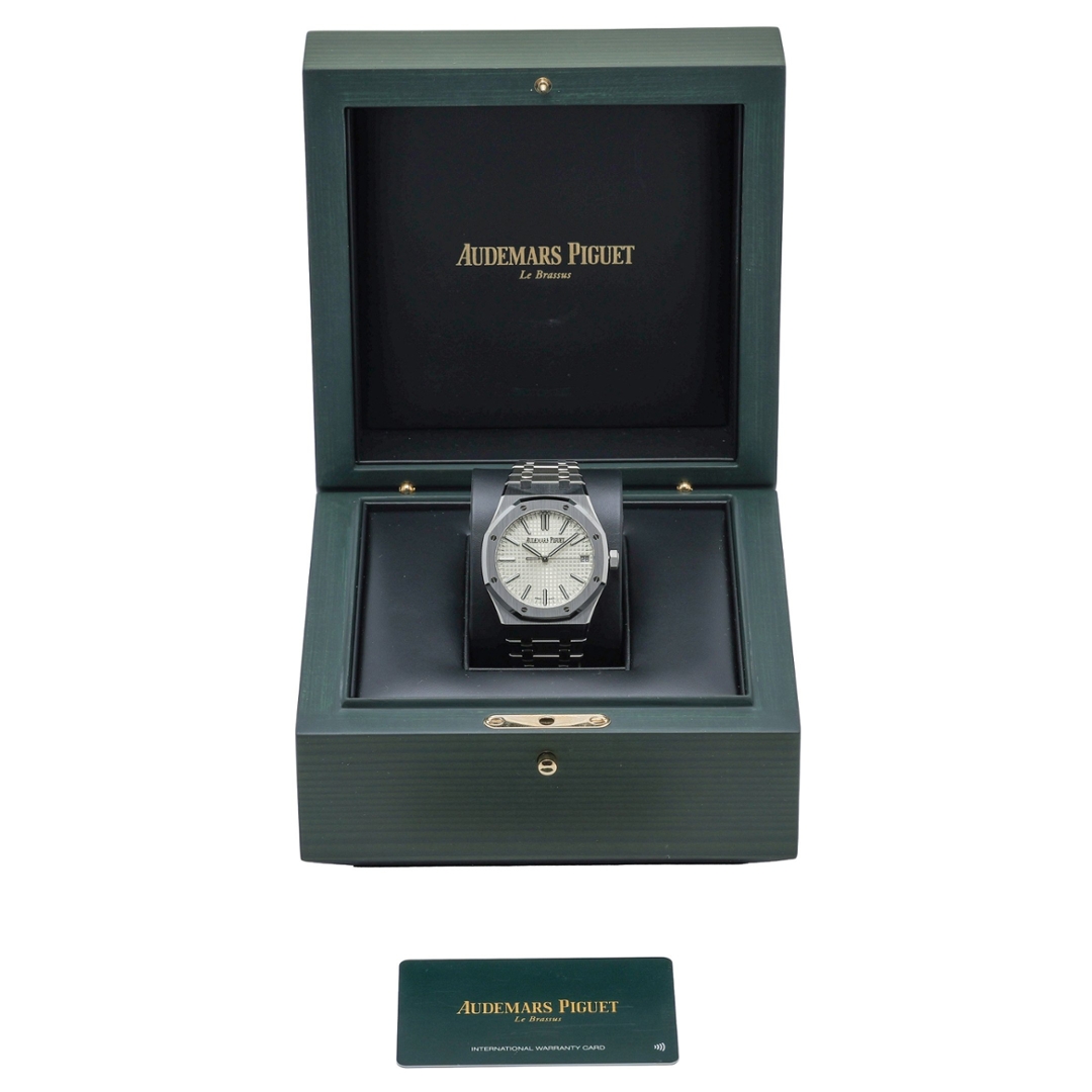 Complete with original Audemars Piguet paperwork, fully boxed and certified, this is a rare chance to secure one of the most desirable configurations in the entire Royal Oak lineup. A modern icon — ready for its next collection.