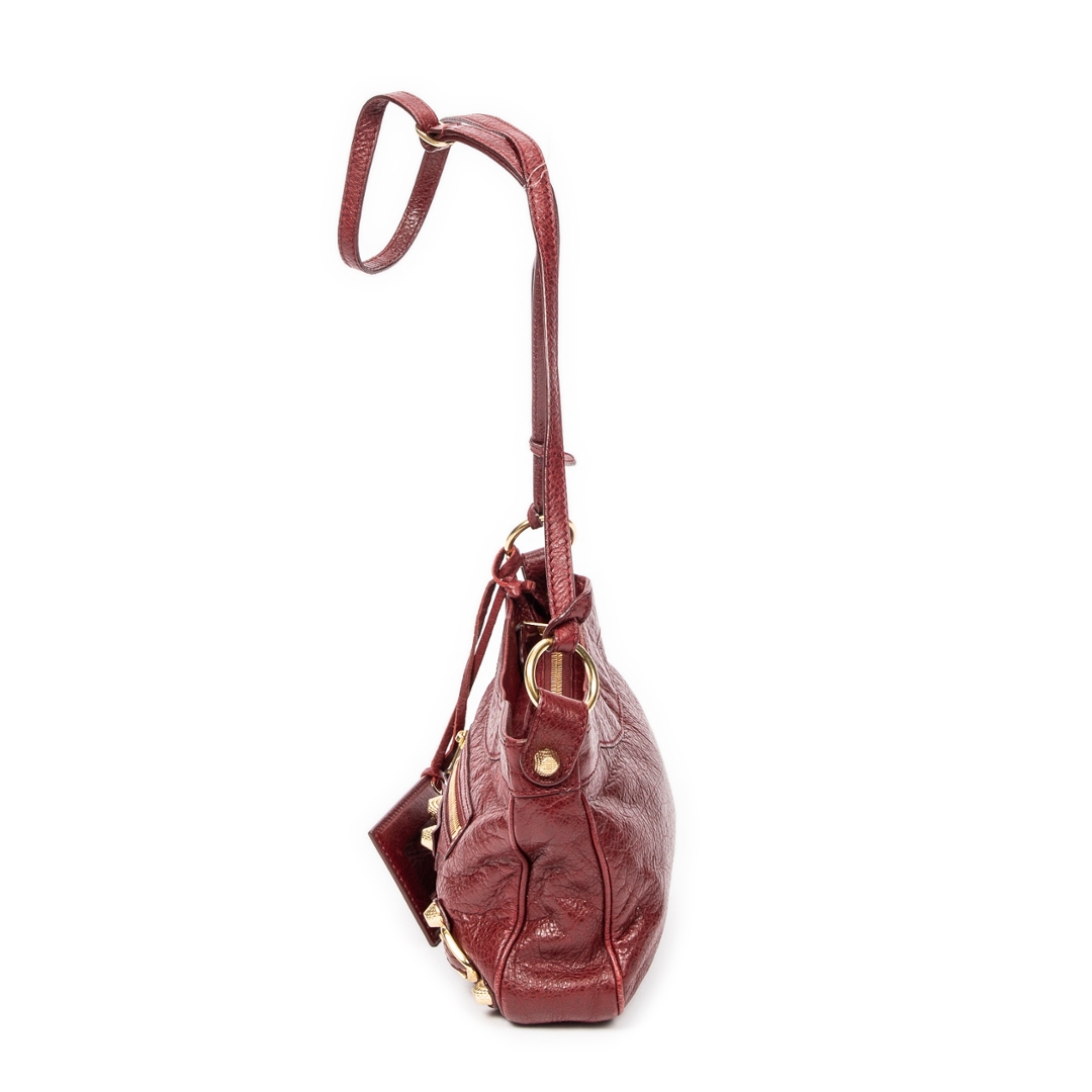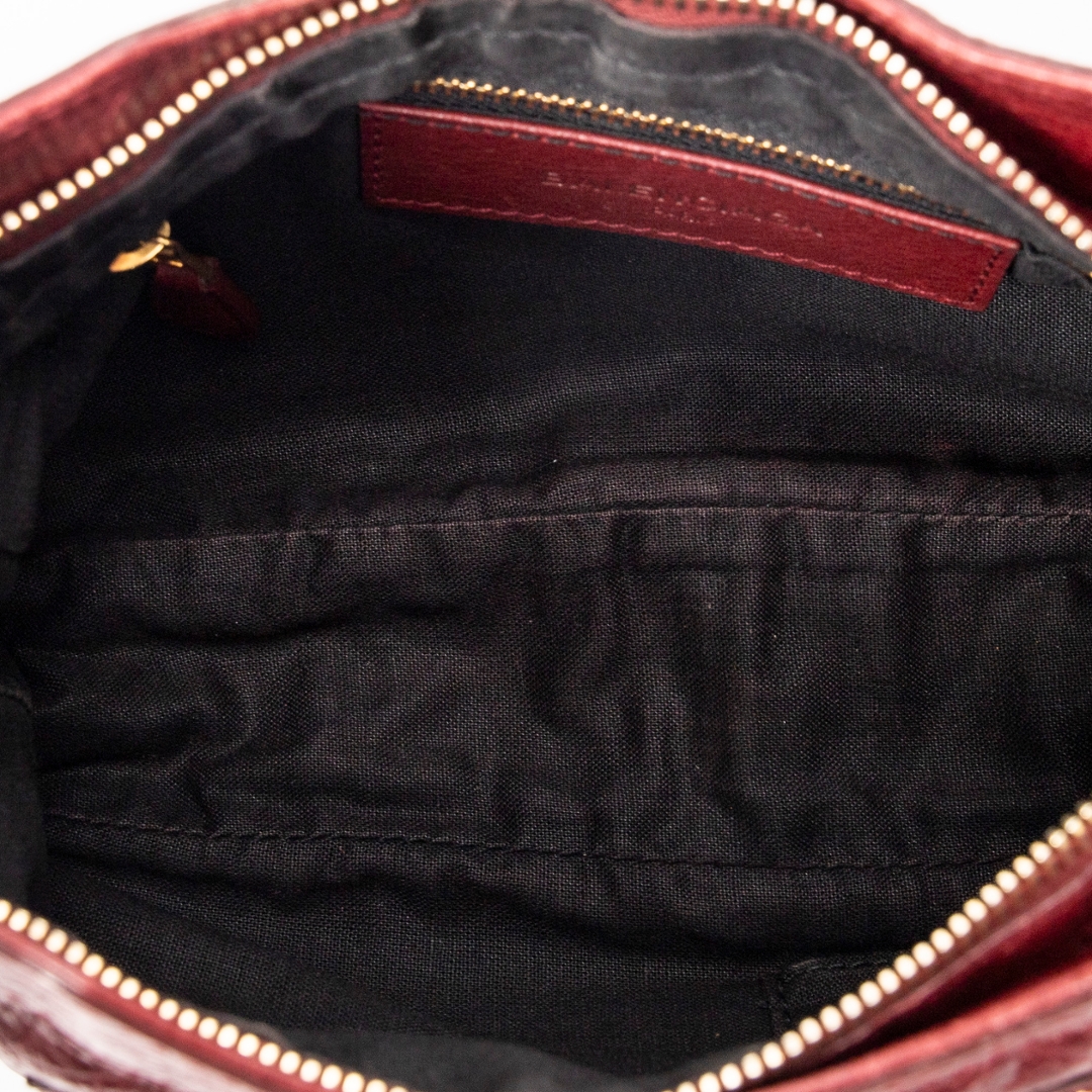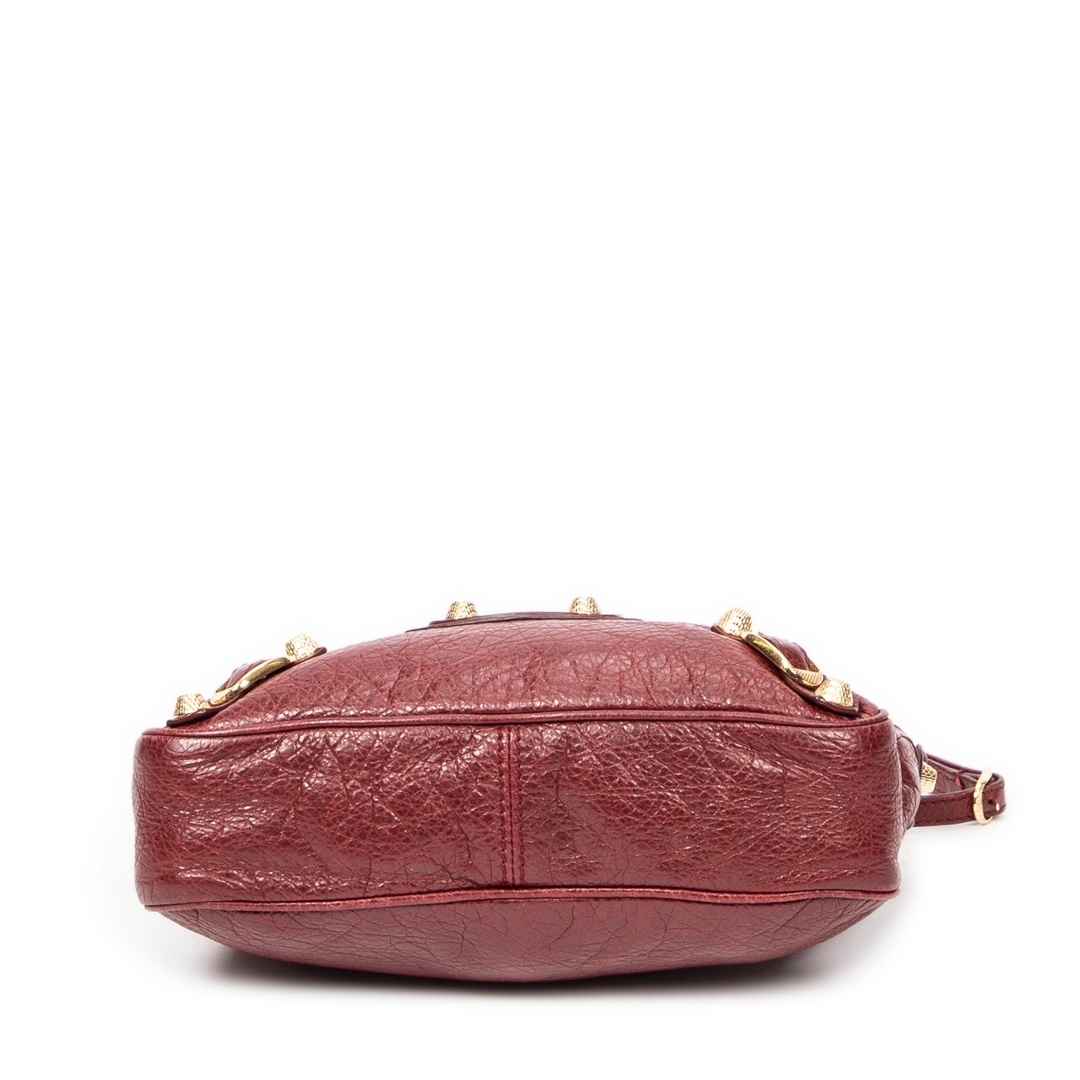 A vintage Balenciaga red calf leather Giant Hip bag with a certificate of authenticity, Approximately 16cm height, 23cm width.