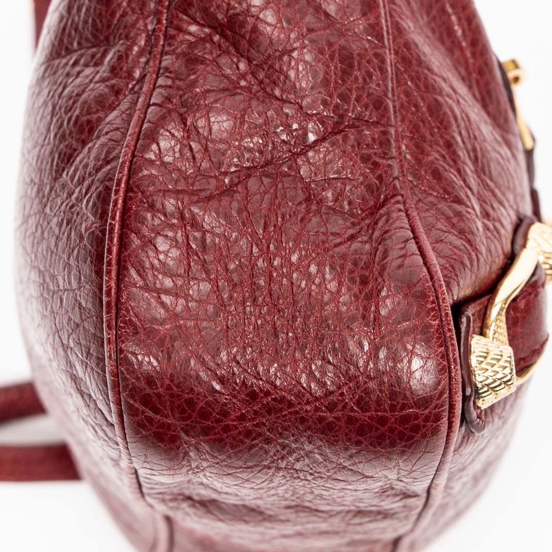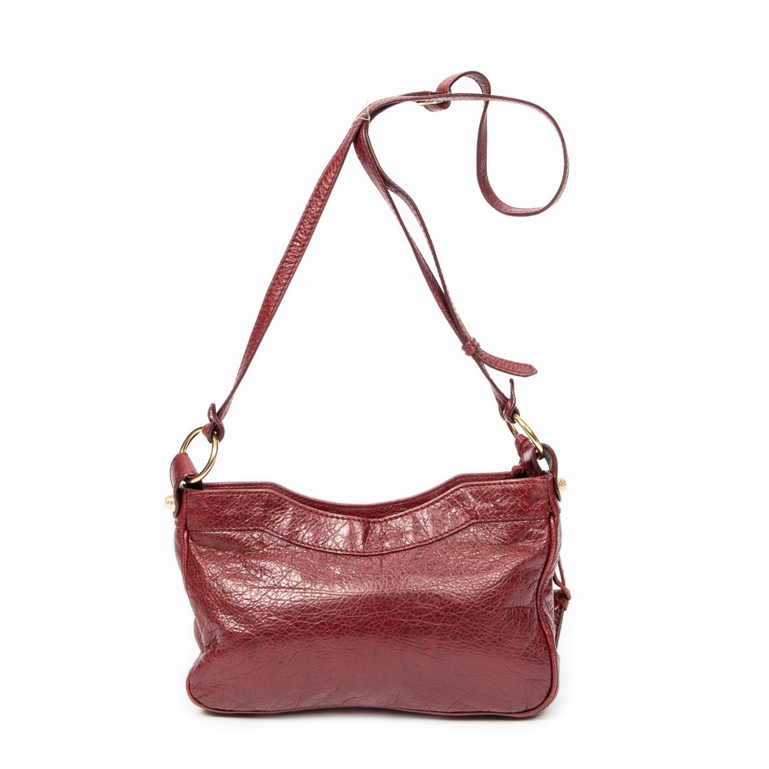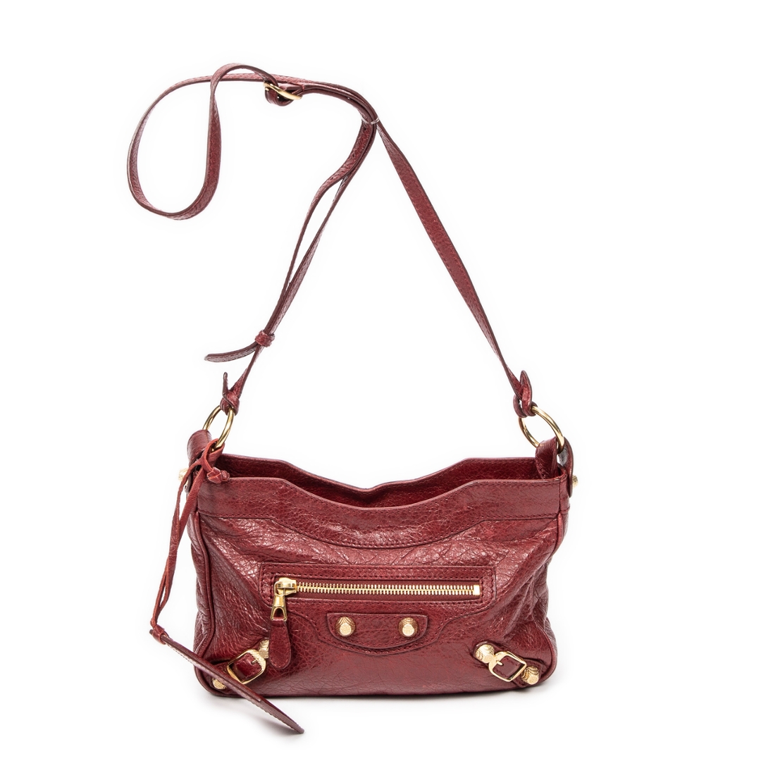A vintage Balenciaga red calf leather Giant Hip bag with a certificate of authenticity, Approximately 16cm height, 23cm width.