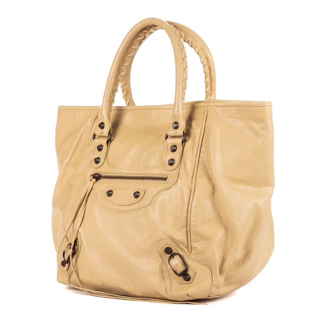 A vintage Balenciaga beige calf leather Small Classic Sunday Tote bag with a certificate of authenticity, Approximately 28cm height, 25cm width.