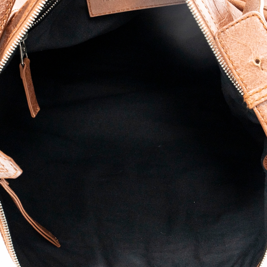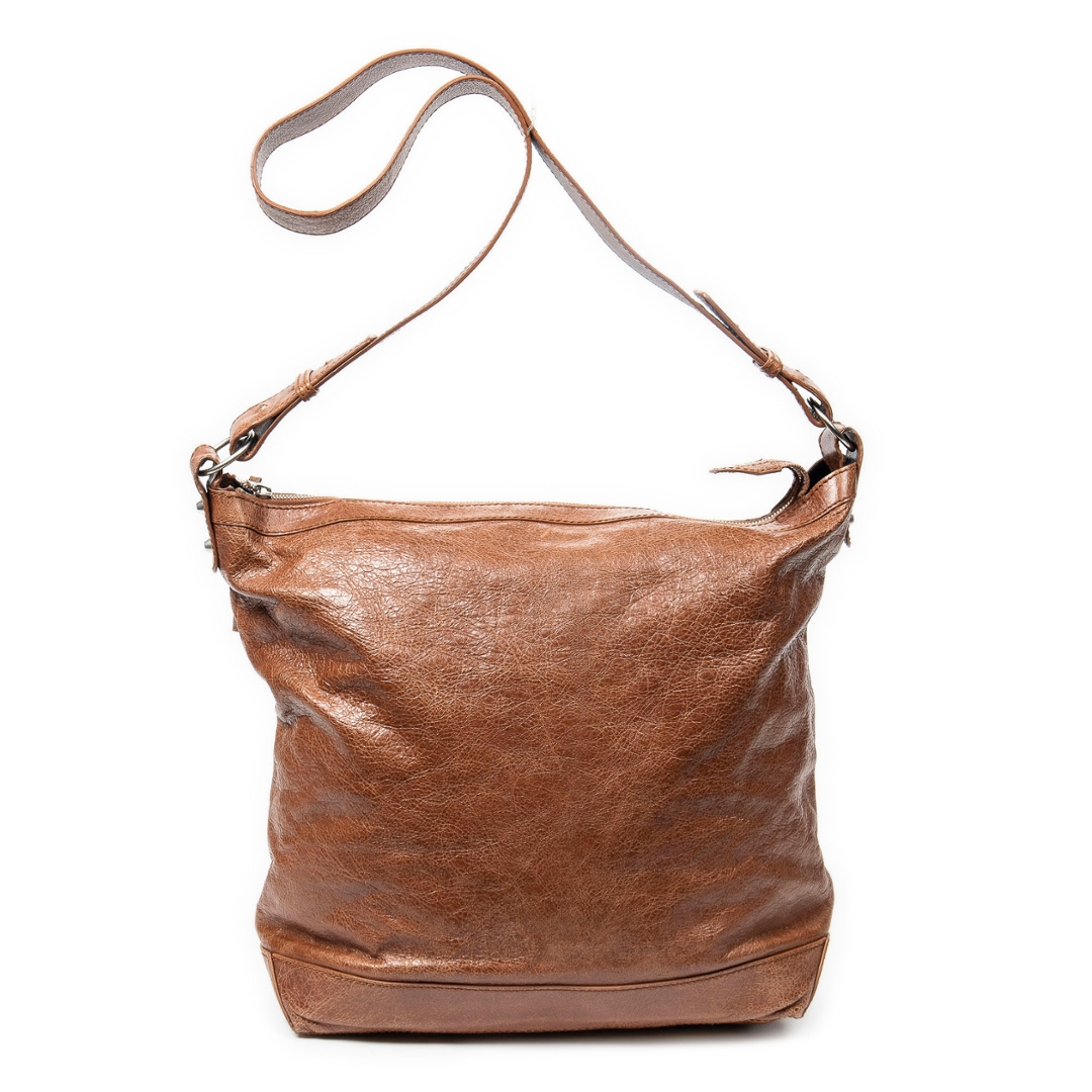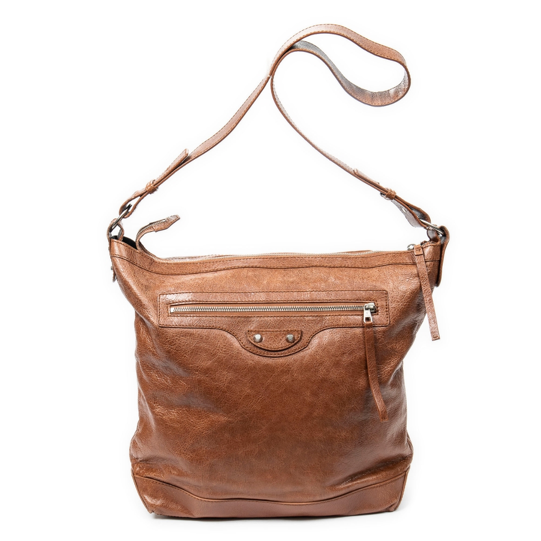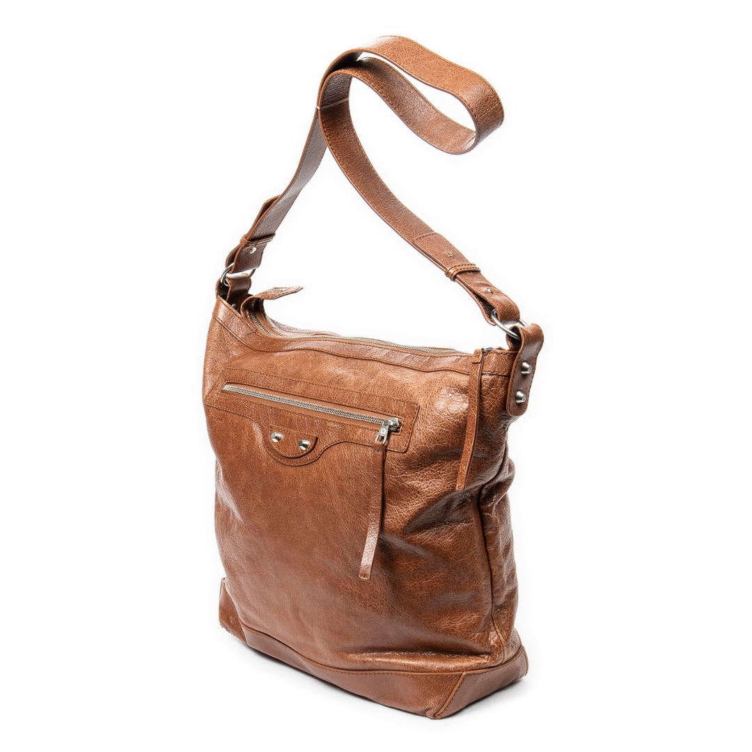 A vintage Balenciaga brown calf leather The Day bag with a certificate of authenticity, Approximately 37cm height, 42cm width.