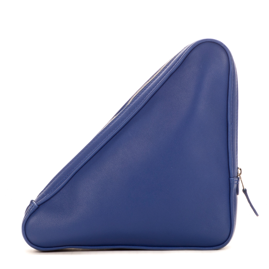 A vintage Balenciaga blue calf leather Triangle Pouch bag with a certificate of authenticity, Approximately cm height, cm width.