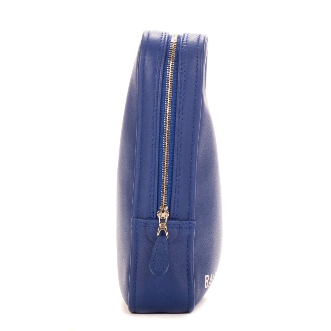 A vintage Balenciaga blue calf leather Triangle Pouch bag for those who appreciate bold, unconventional design with a modern edge. The Triangle bag is one of Balenciaga’s most distinctive creations, instantly recognisable for its geometric silhouette inspired by retro sports bags. Crafted in supple blue calf leather, it is finished with the house’s contrasting white logo, striking a balance between playful design and luxury craftsmanship.
