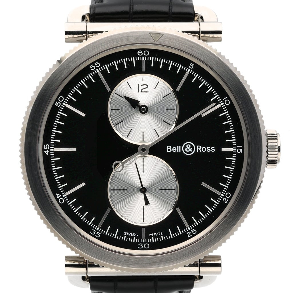 This example is offered in good condition, fitted to a black leather strap with a stainless steel clasp. Supplied with original Bell & Ross paperwork, boxed and certified, and covered by a 12-month WLC warranty, it represents a distinctive and increasingly sought-after Bell & Ross reference.