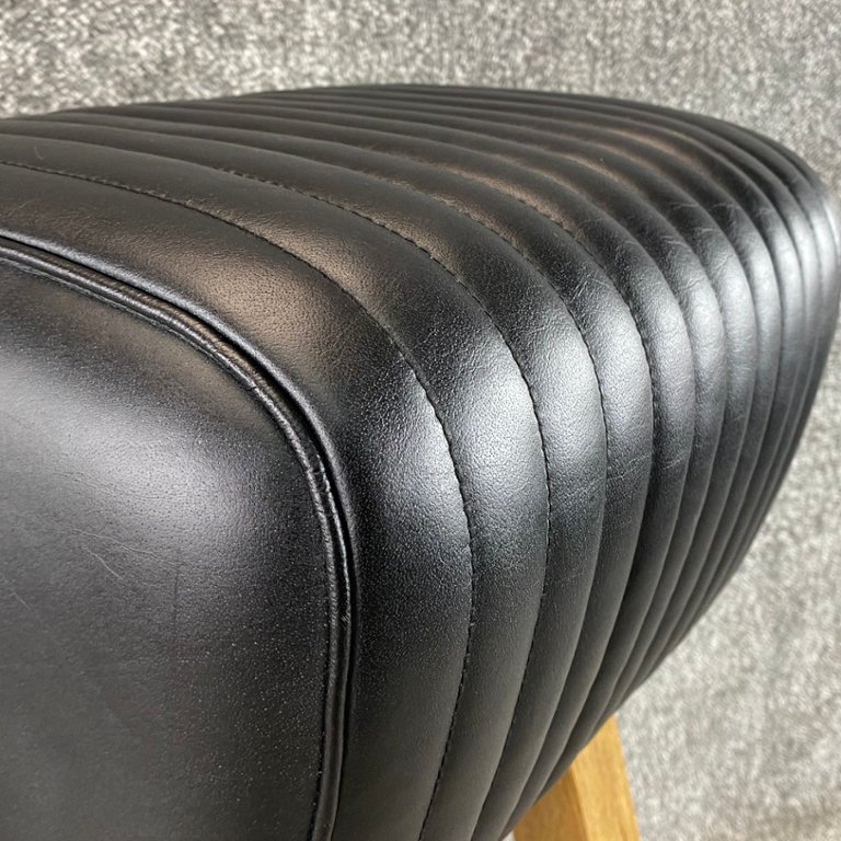 Elevate your home bar or kitchen counter with the Black Leather Fan Design Bar Stool. With its unique design and high-quality craftsmanship, this stool adds a touch of sophistication and flair to any space.