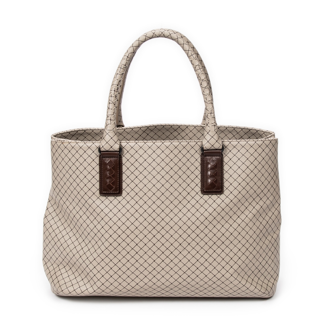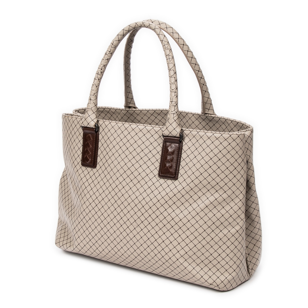 A vintage Bottega Veneta taupe/brown calf leather Marco Polo Tote bag with a certificate of authenticity, Approximately 28cm height, 38cm width.