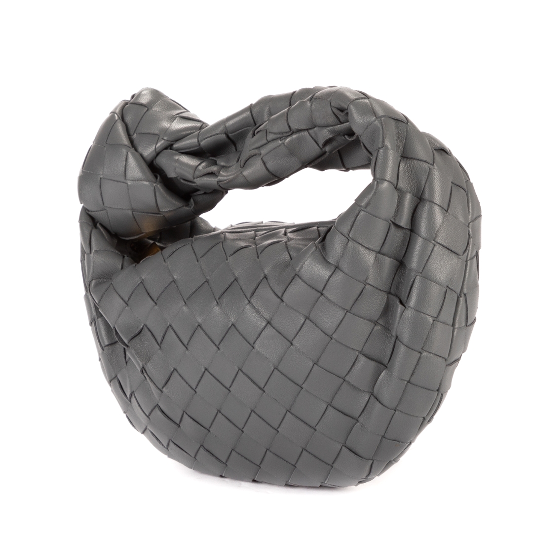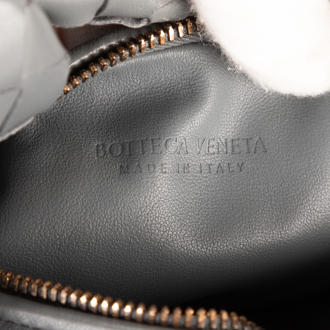 A vintage Bottega Veneta grey calf leather Mini Jodie Knot Tote bag with a certificate of authenticity, Approximately 15cm height, 23cm width.