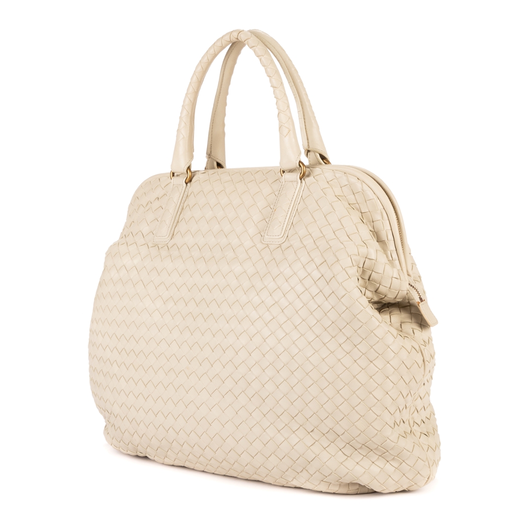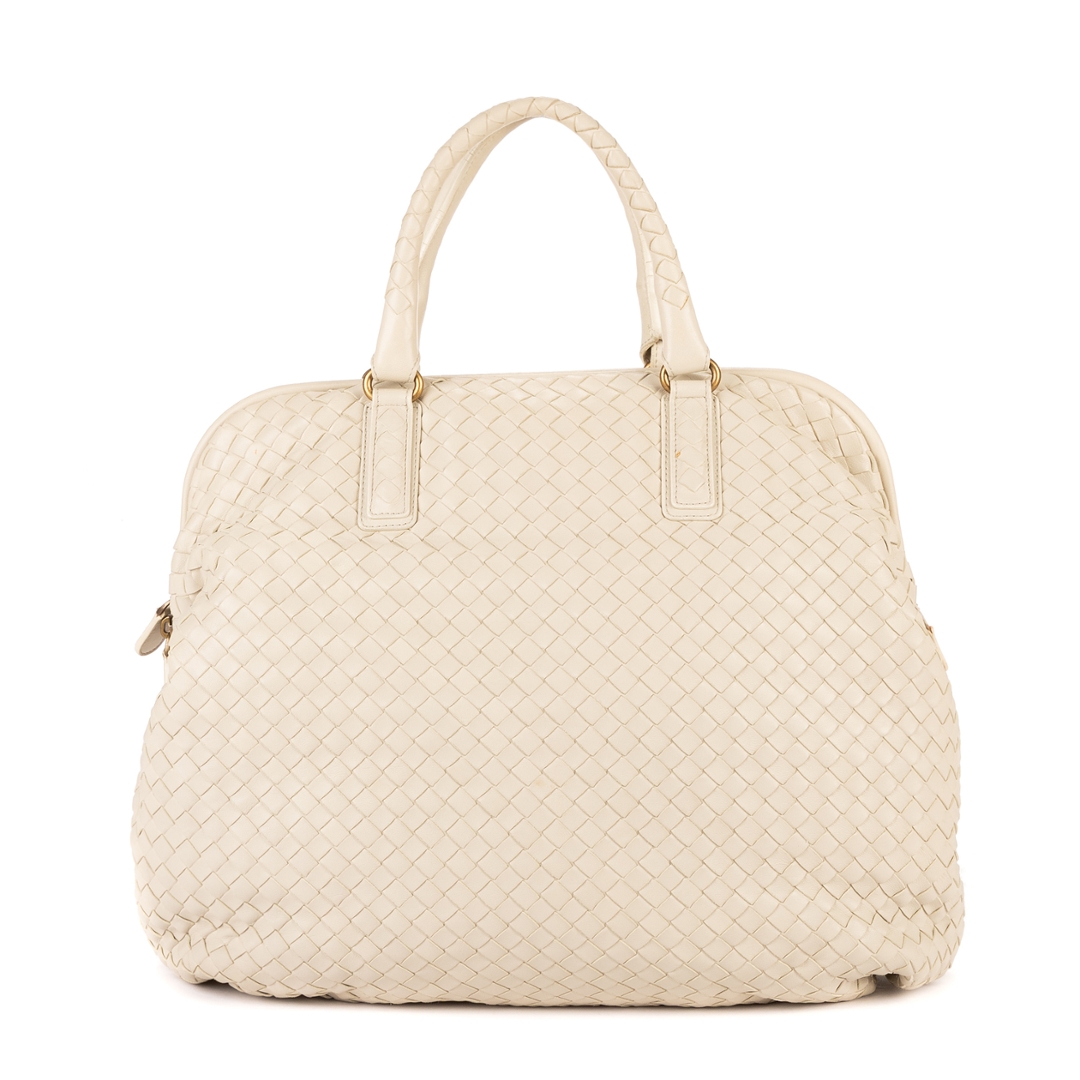 A vintage Bottega Veneta ivory calf leather Vintage Doctors Bowling Tote bag with a certificate of authenticity, Approximately 36cm height, 40cm width.