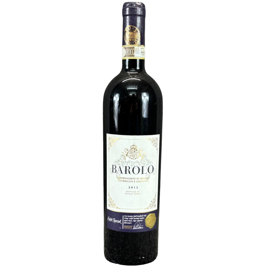 A 75cl bottle of 2015 Barolo Red Wine presents a classic, distinguished appearance with its deep, dark glass and elegant cream label. The ornate crest, fine detailing, and DOCG seal reinforce its authenticity and premium status, while the vintage year is proudly displayed. It’s a bottle that immediately signals heritage, craftsmanship, and Italian winemaking tradition at its finest.