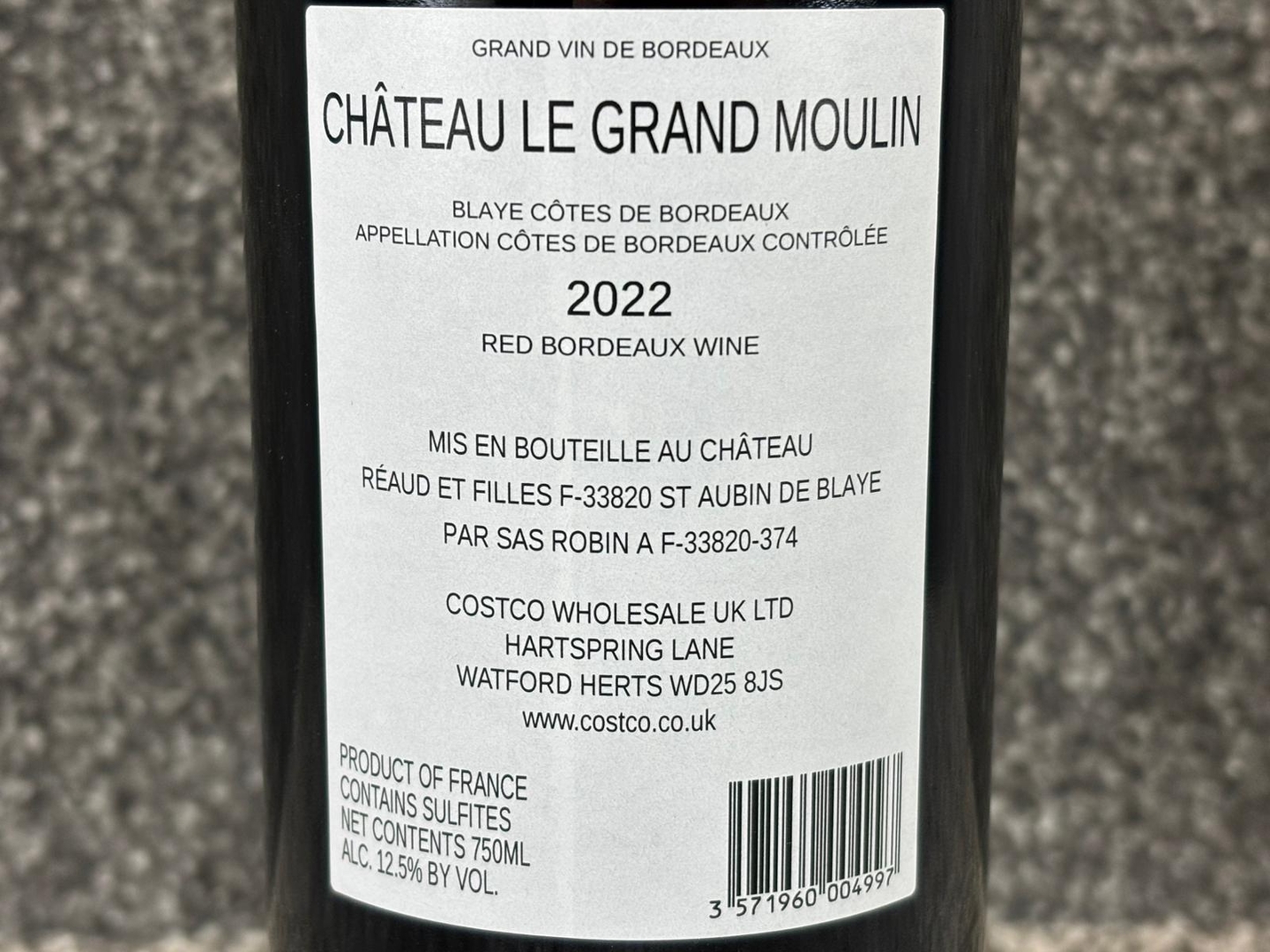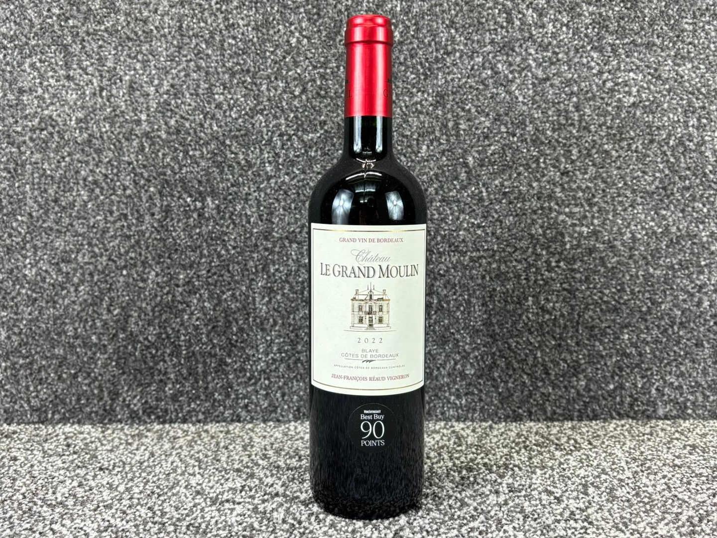 A bottle of 2022 Chateau Le Grand Moulin Blaye Cotes De Bordeaux Wine. 750ml.