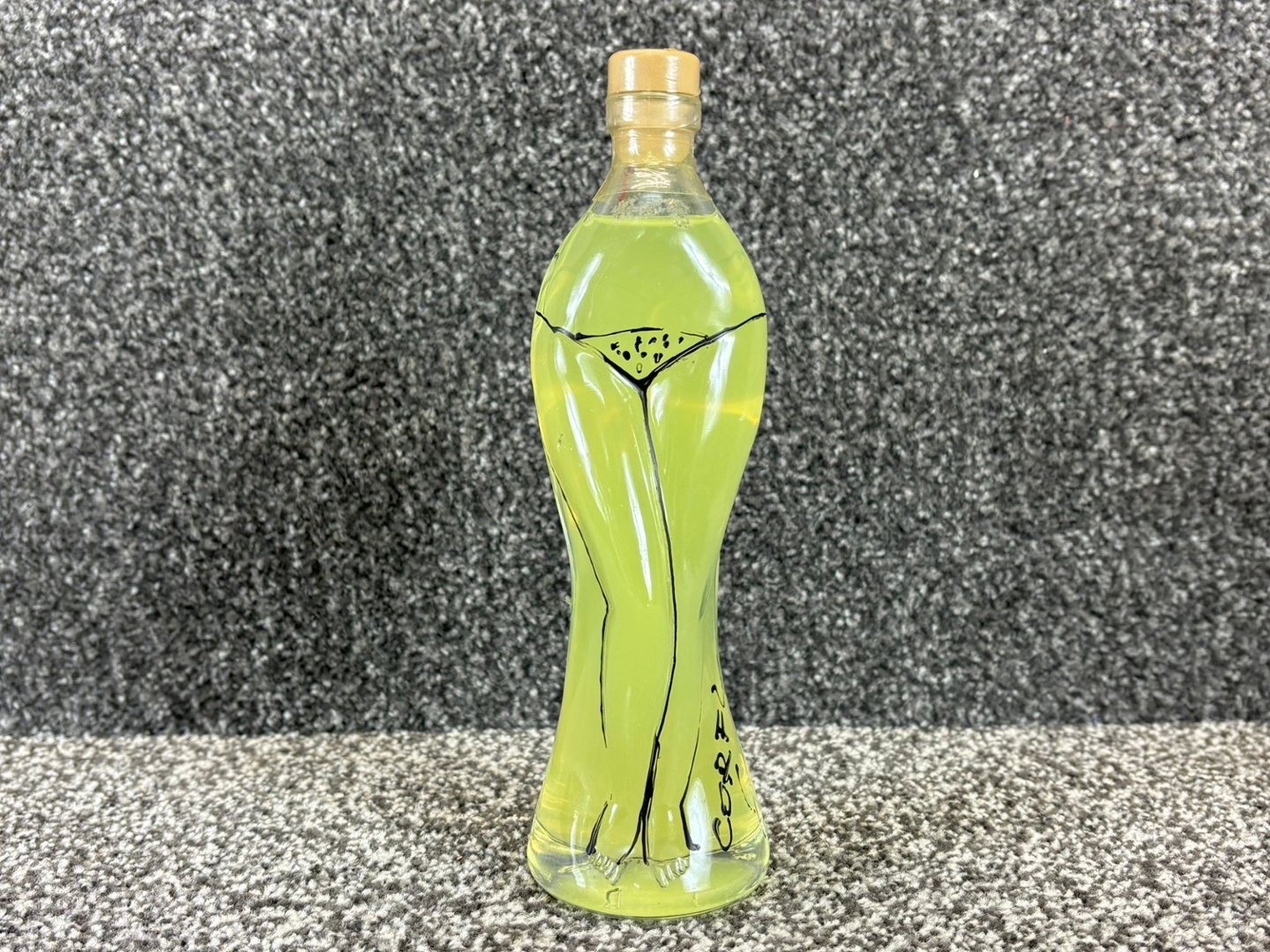 A 20cl bottle of Corfu Limoncello presented in a playful, sculpted glass bottle, this eye-catching piece is as much a decorative keepsake as it is a vibrant Mediterranean spirit. The bottle is shaped to resemble a stylised female form, complete with painted detailing, making it instantly stand out on a shelf or as a fun, memorable gift from Greece. Its bright lemon-yellow liquid adds even more visual appeal, suggesting the refreshing flavour inside.