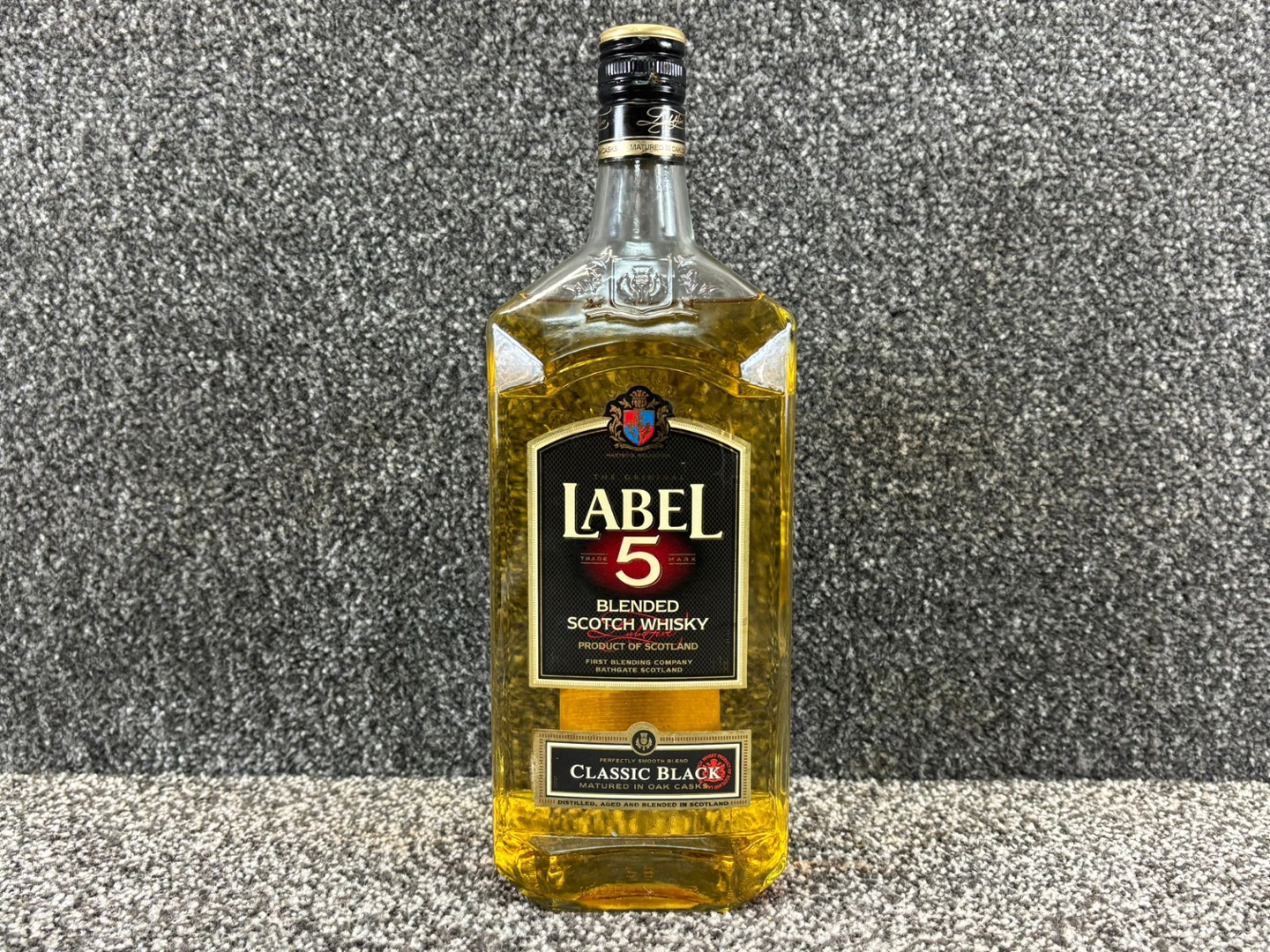 A 100cl bottle of Label 5 Blended Scotch Whisky offers excellent