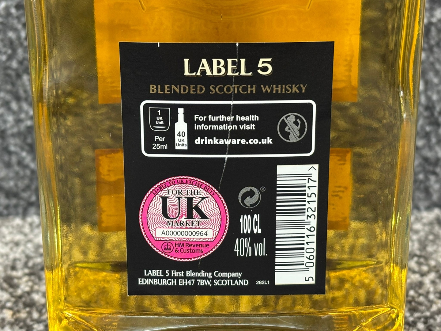 A bottle of Label 5 Blended Scotch Whisky. 100cl.
