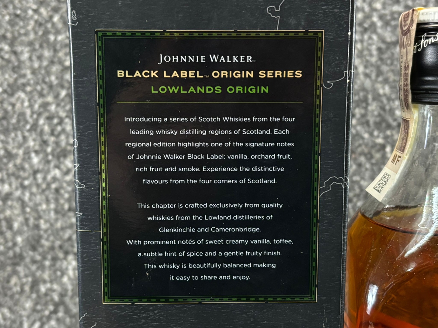 - > Bottle of Limited Edition Johnnie Walker Black Label Lowlands Origin Scotch Whisky