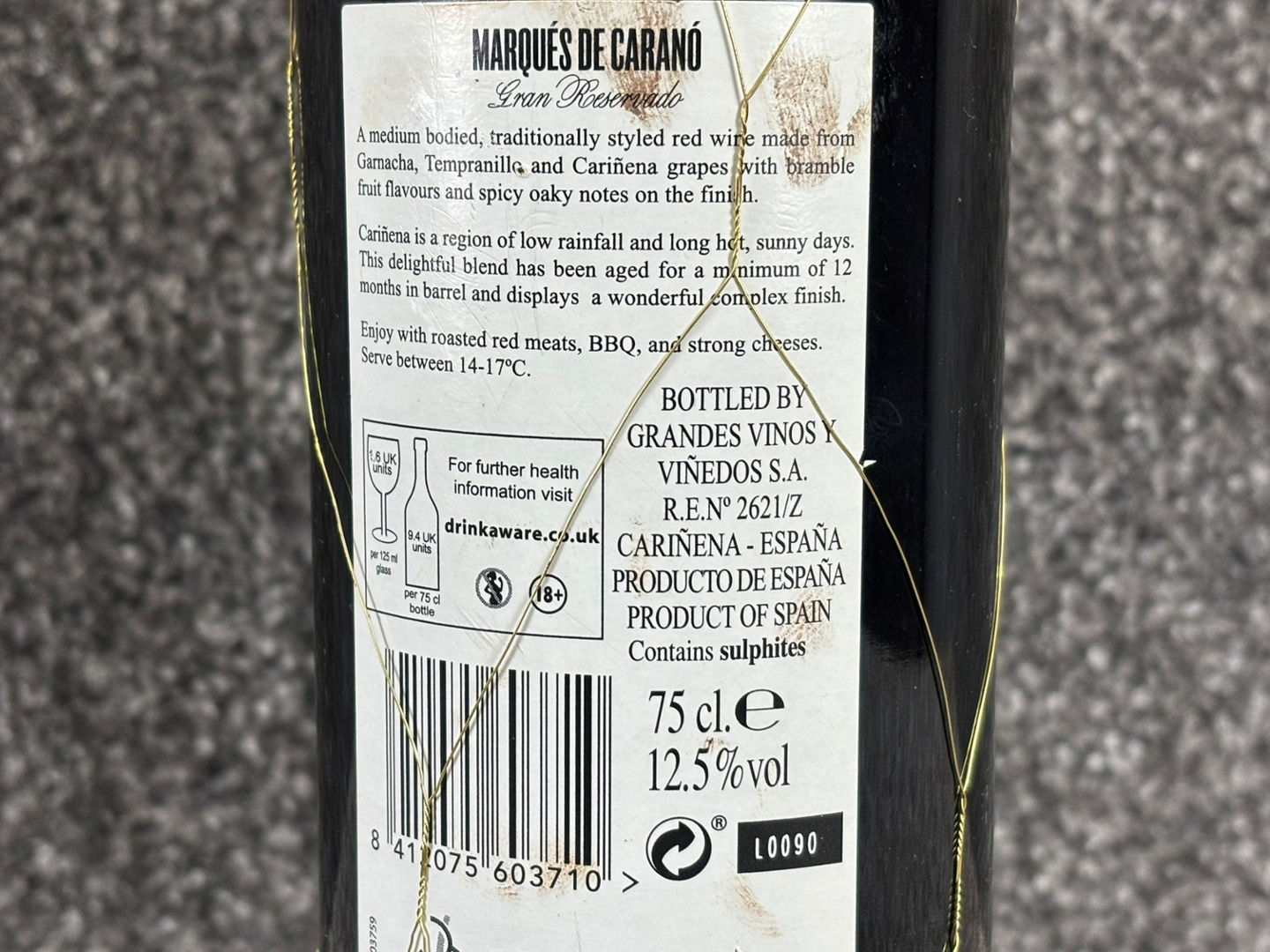A 2016 bottle of Marques De Carano Red Wine. 75cl.