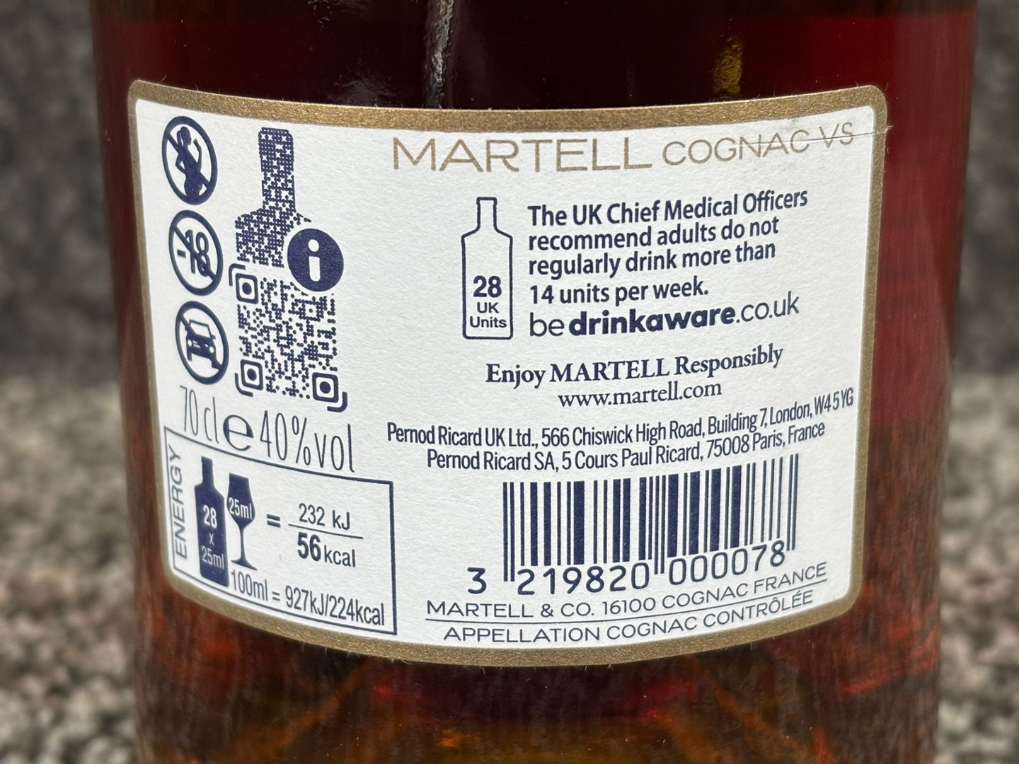 Bottle of Martell VS Fine Cognac