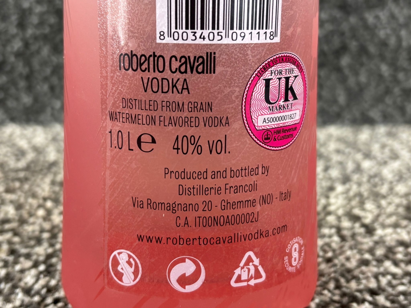 A bottle of Roberto Cavalli Watermelon Vodka. 1 litre.