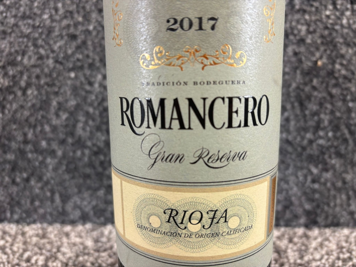 A bottle of 2017 Romancero Gran Reserva Rioja. 750ml.