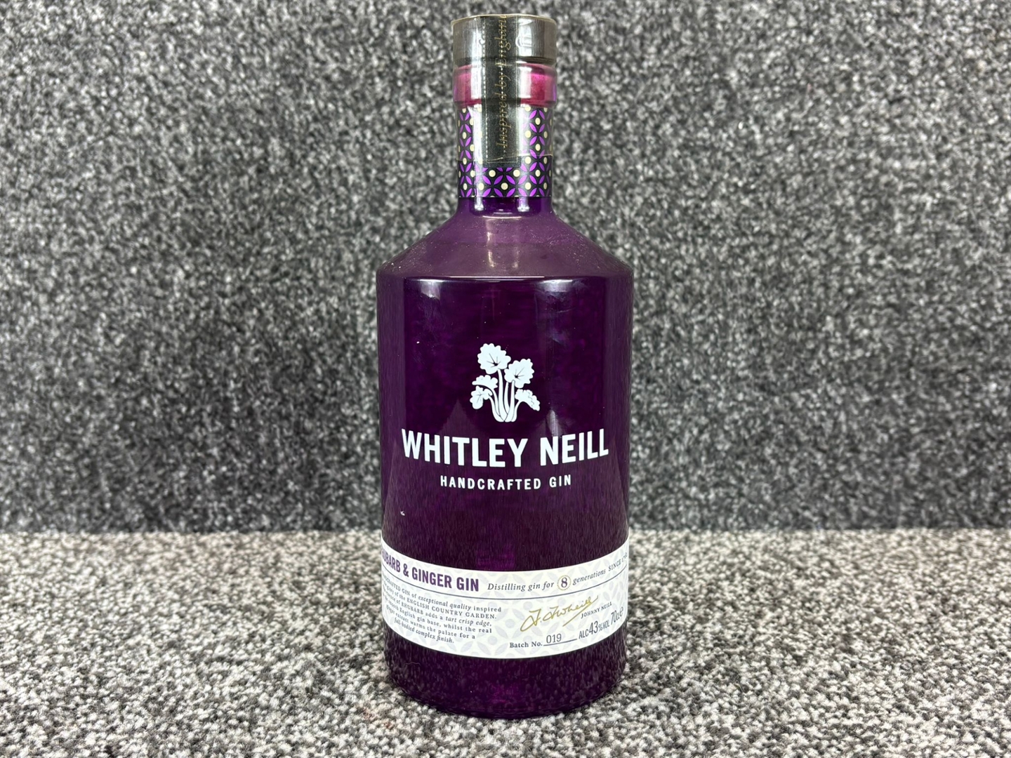A bottle of Whitley Neill Rhubarb & Ginger Gin. 70cl.