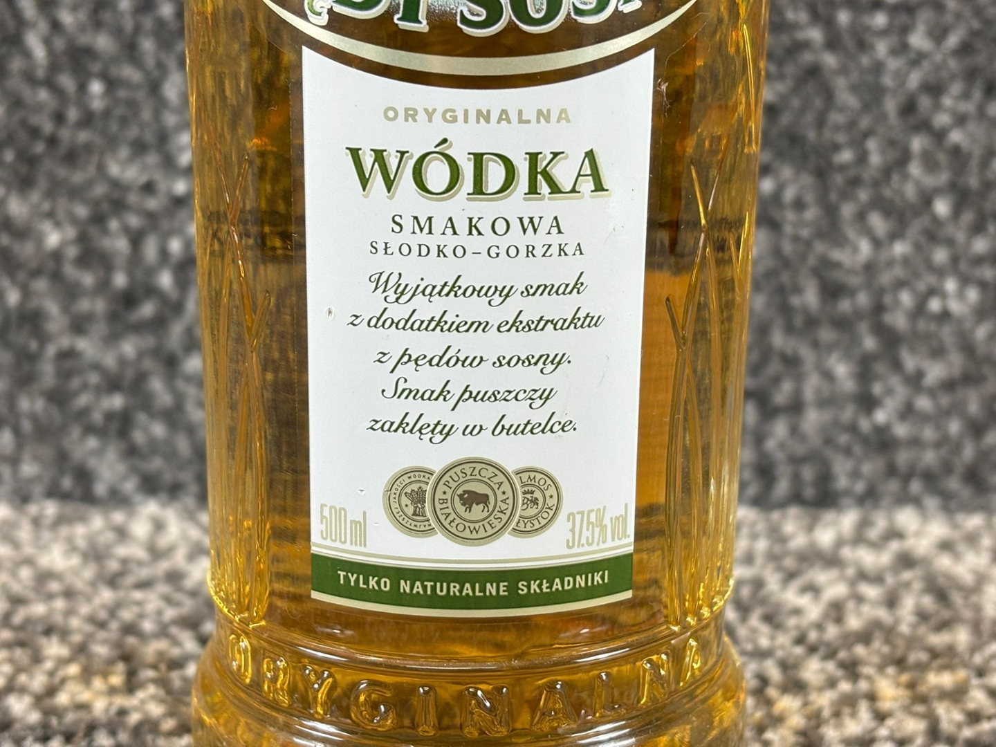 - > Bottle of Zubrowka Pedy Sosny Vodka.