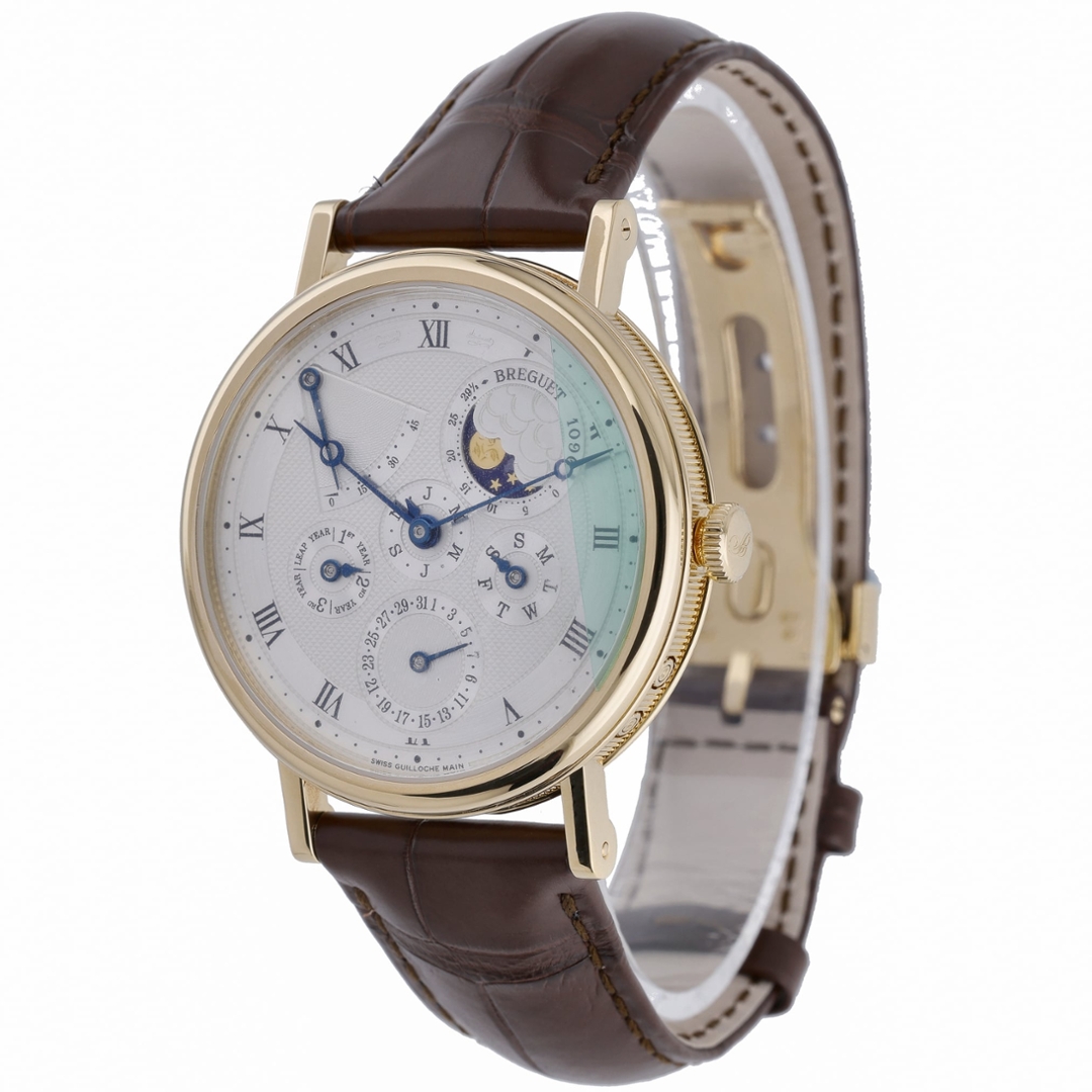 This watch is powered by an automatic perpetual calendar movement, finished to an exceptional standard and designed to correctly account for varying month lengths and leap years without manual adjustment. The movement exemplifies Breguet’s historic mastery of complex complications, combining technical precision with classical elegance.