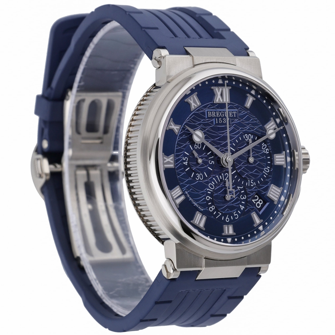 Breguet Marine Chronographe Watch, Blue Rubber Strap with an 18ct White Gold Case & Clasp on a Blue Dial