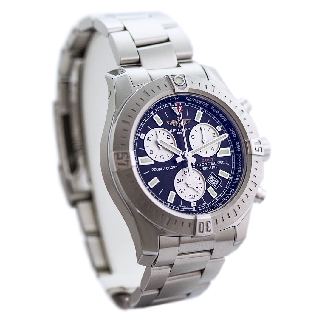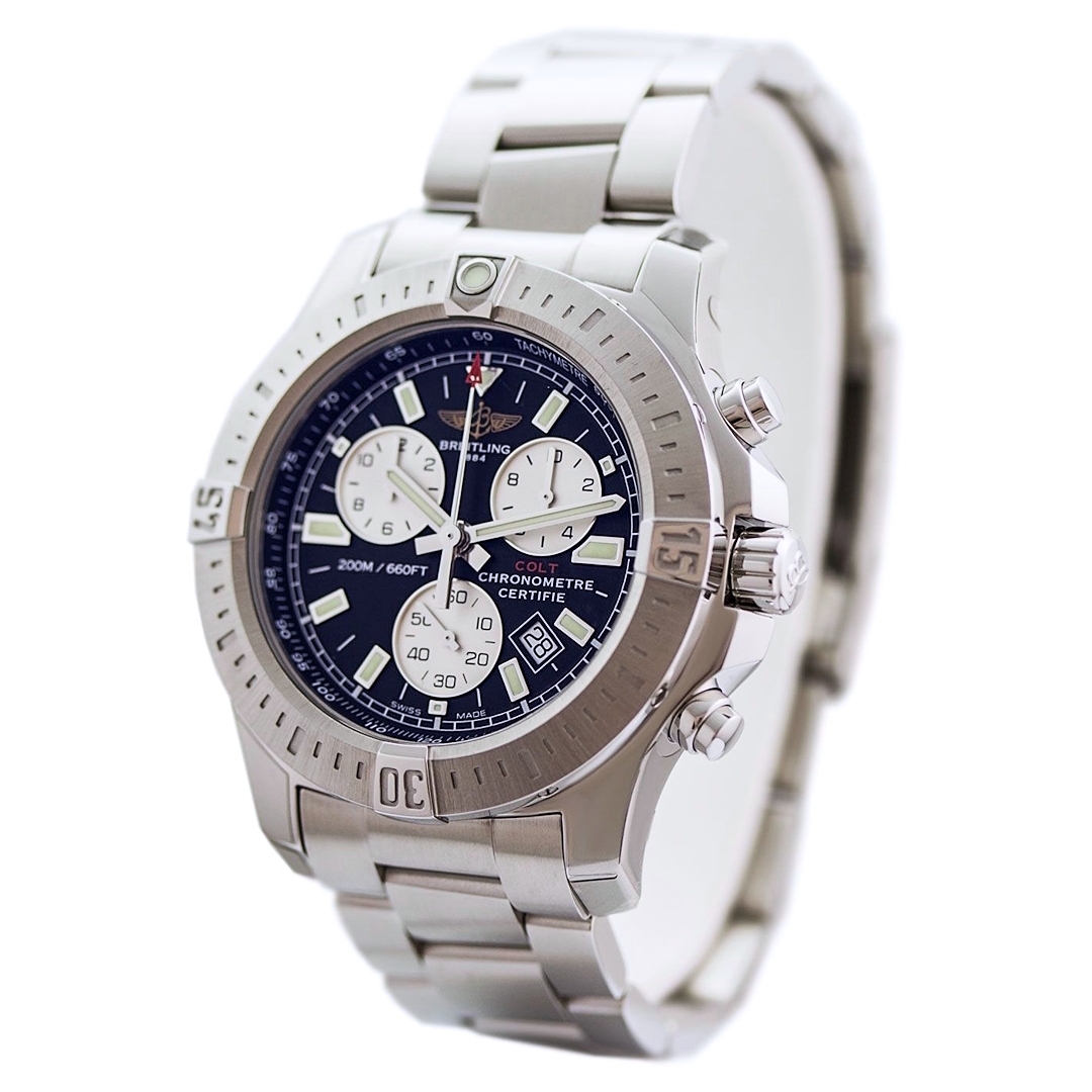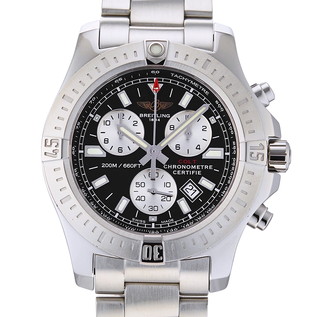 A Breitling Colt Chronograph Watch, Stainless Steel on a Black Dial