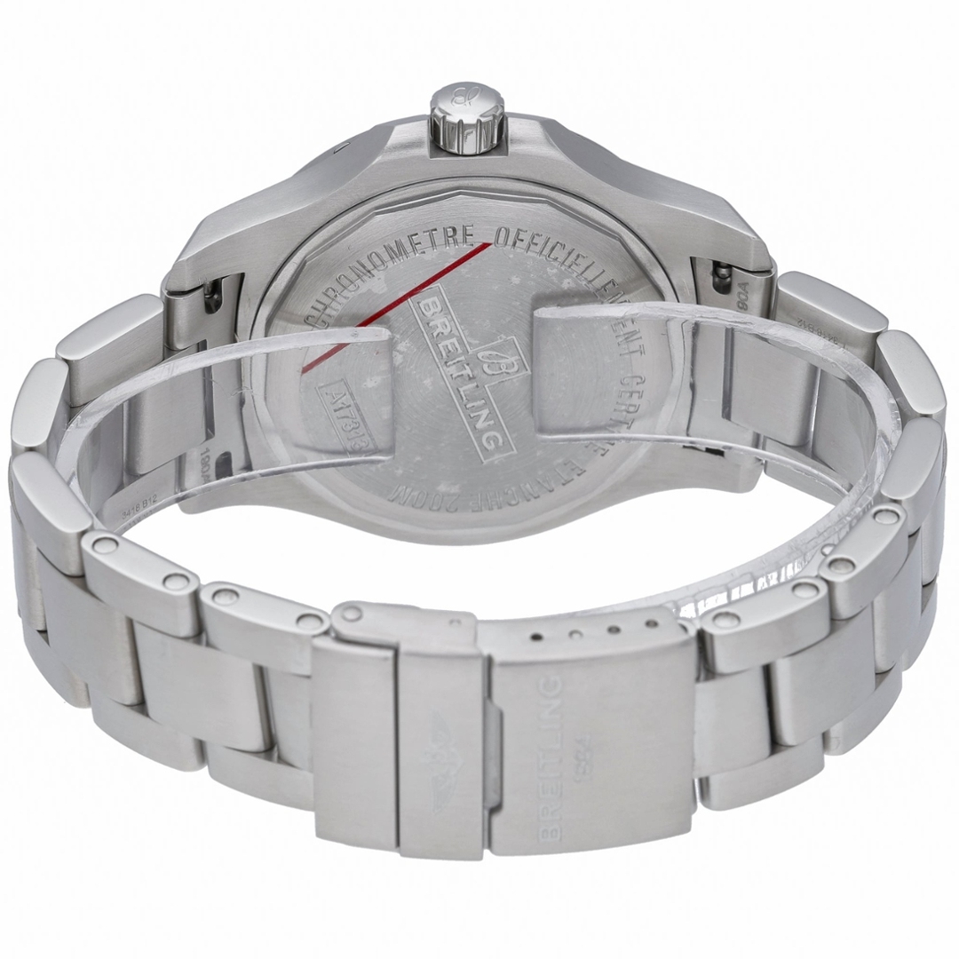 Powered by the Breitling Calibre 17 automatic movement, this chronometer-certified watch is built for reliability and precision in everyday wear. The screw-down crown and solid-case construction reinforce its durable, tool-watch character, while the stainless steel bracelet provides a secure, comfortable fit suitable for both active and refined settings.