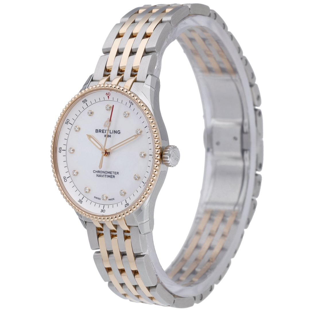 A Bi-Metal Breitling Navitimer 32 Watch, Stainless Steel & 18ct Rose Gold on a Mother of Pearl Dial with Diamond Numerals