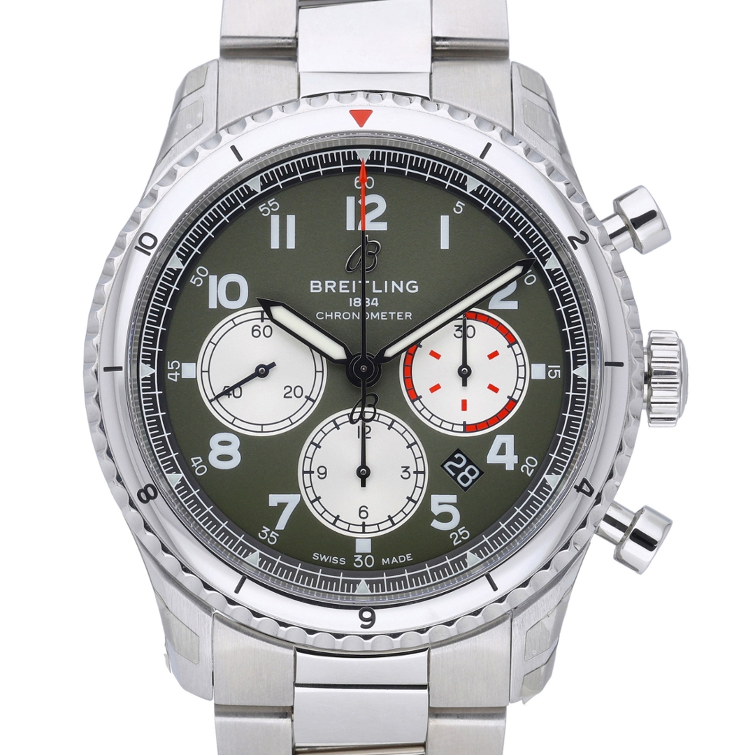 A Breitling Navitimer Aviator 8 Watch, Stainless Steel on a Green Dial