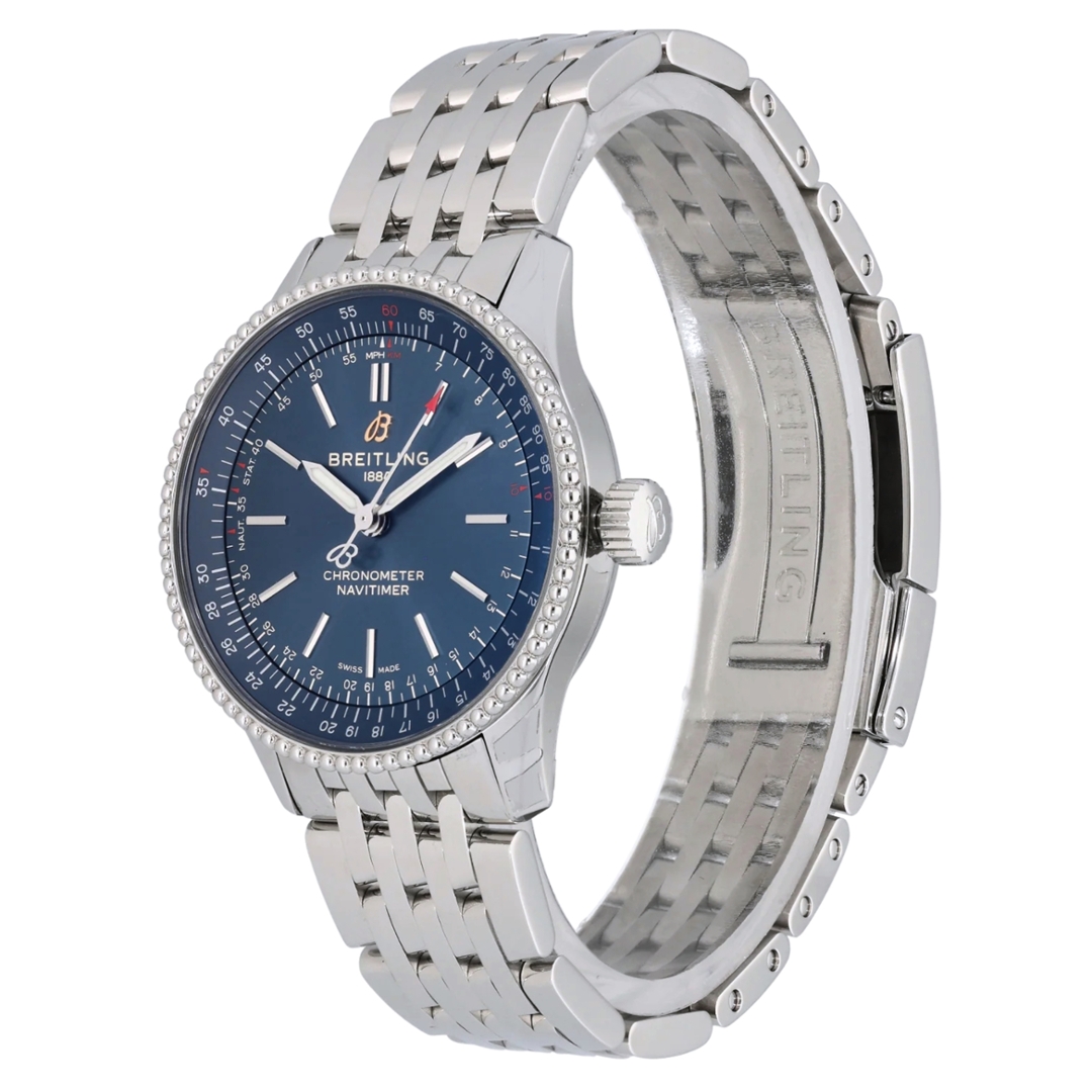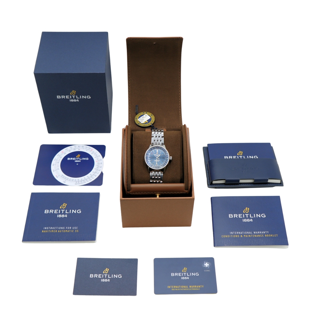 This example is offered in good condition, complete with its original Breitling paperwork, presentation box, and a 12-month WLC warranty. A perfect introduction to one of Breitling’s most important collections, the Navitimer 35 blends heritage design, mechanical excellence, and everyday wearability – making it an excellent choice for collectors and enthusiasts alike.