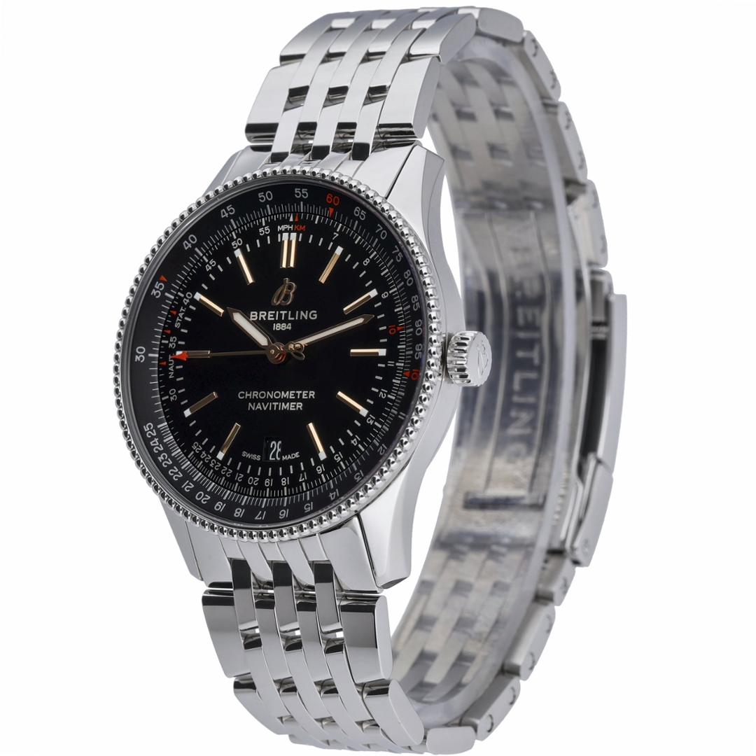 A Breitling Navitimer Watch, Stainless Steel with a Black Dial.